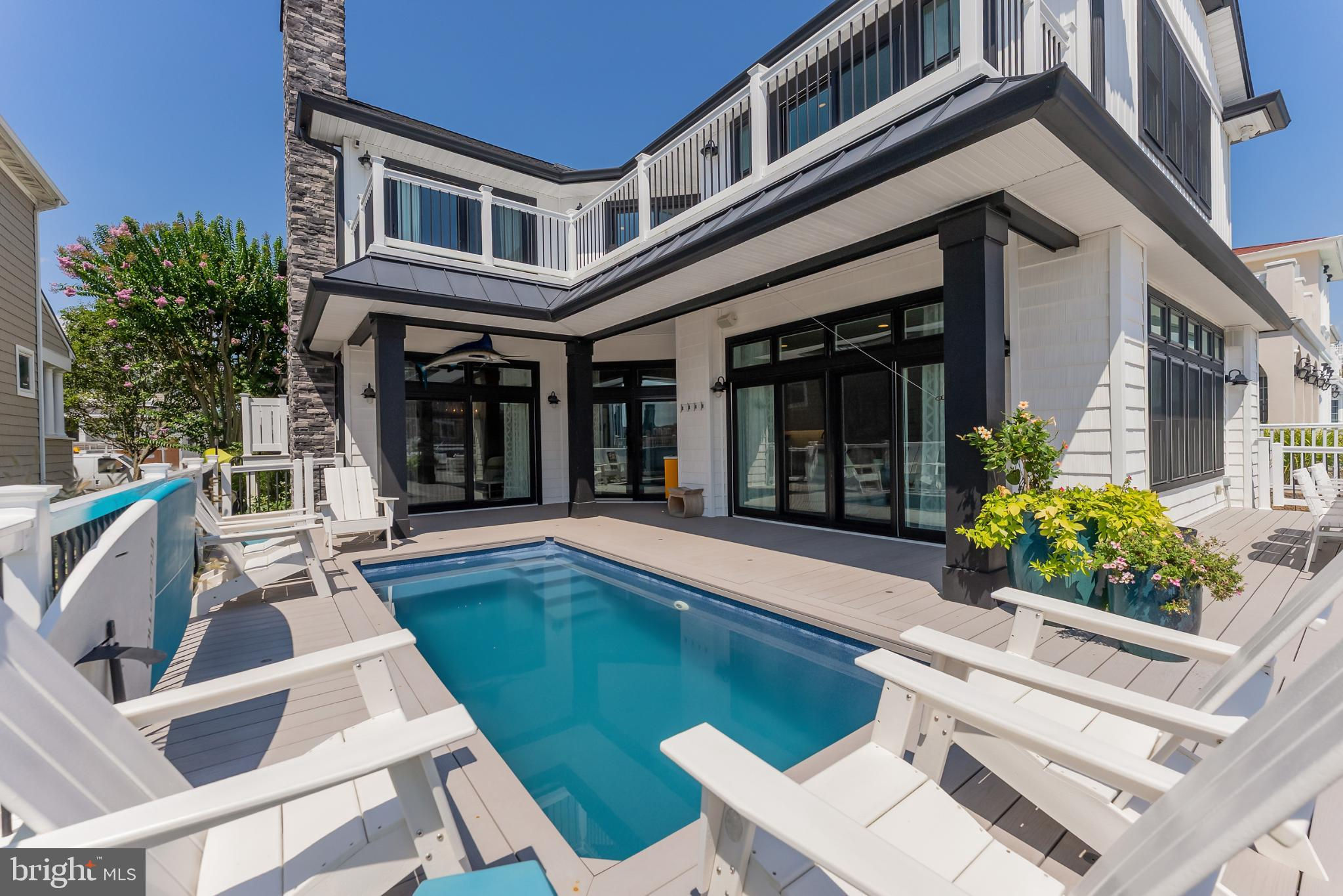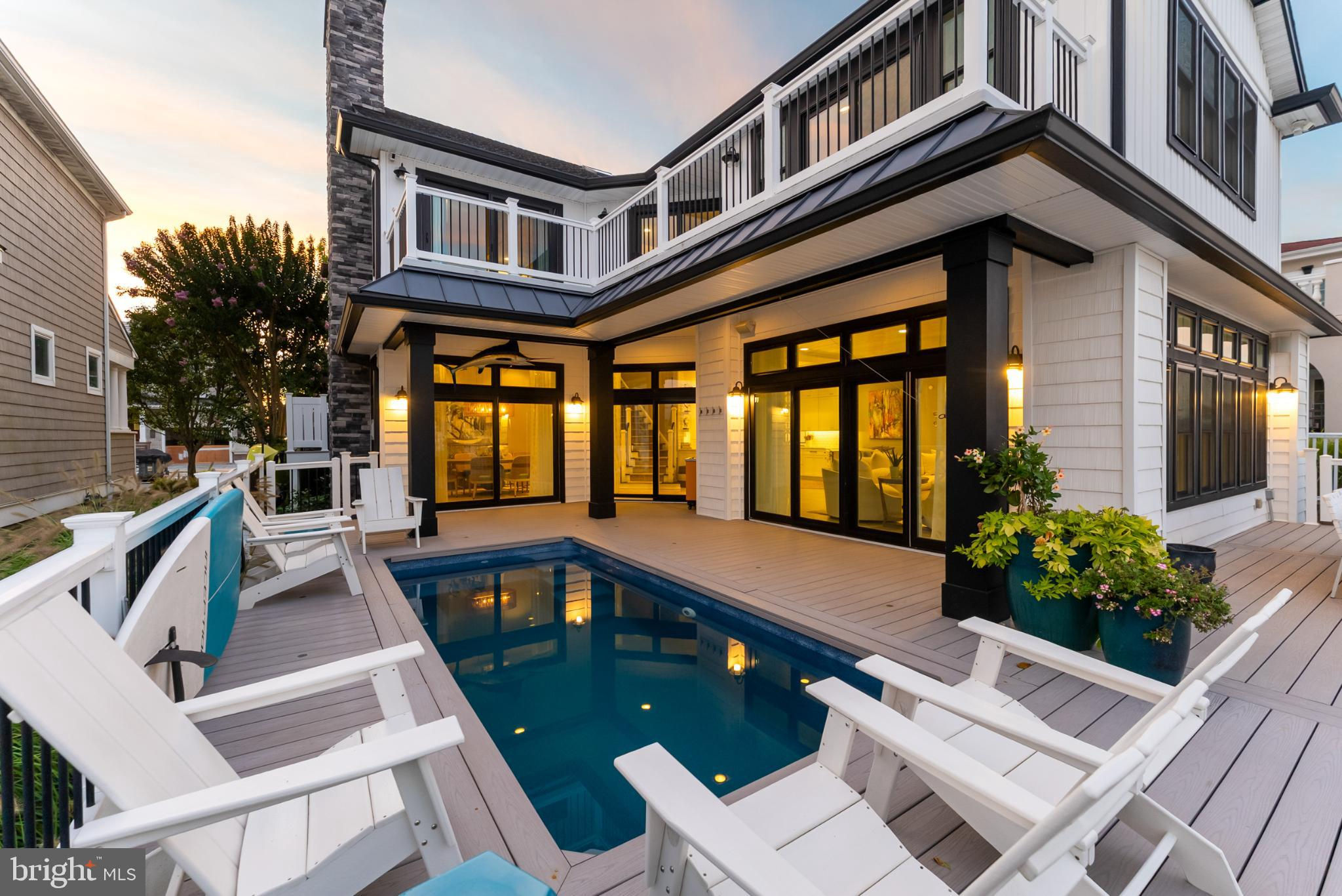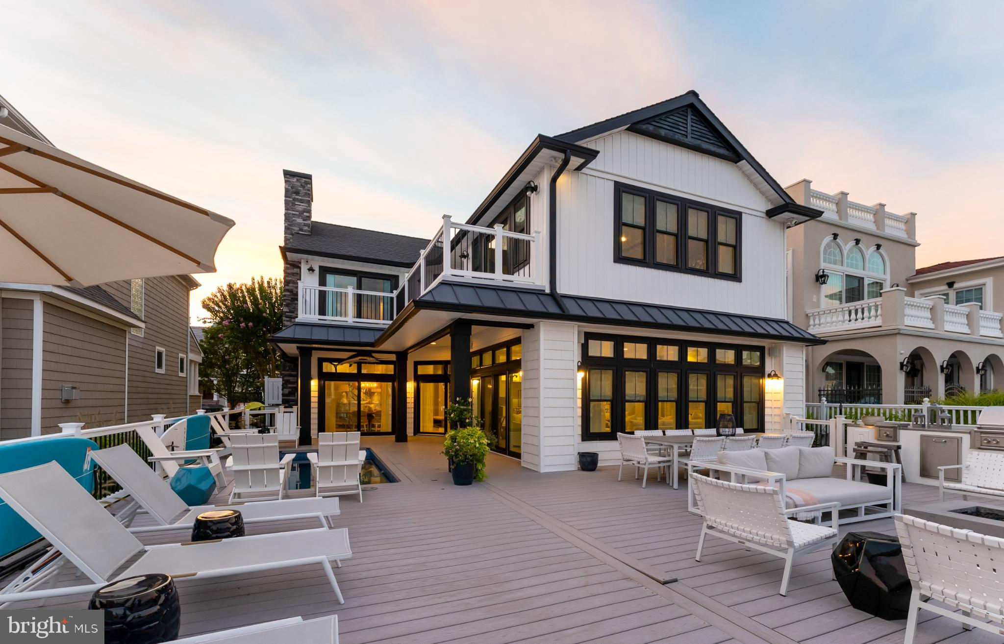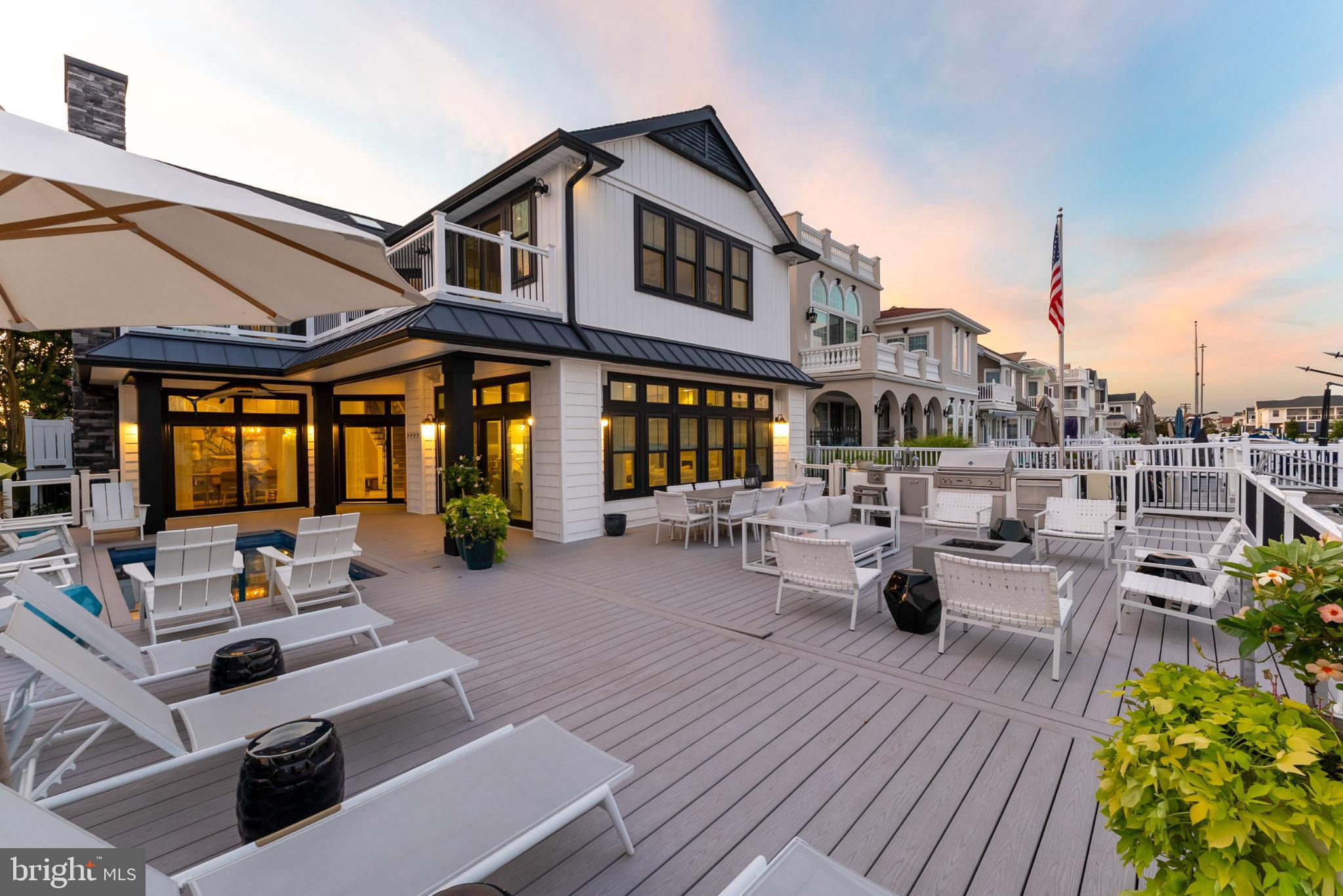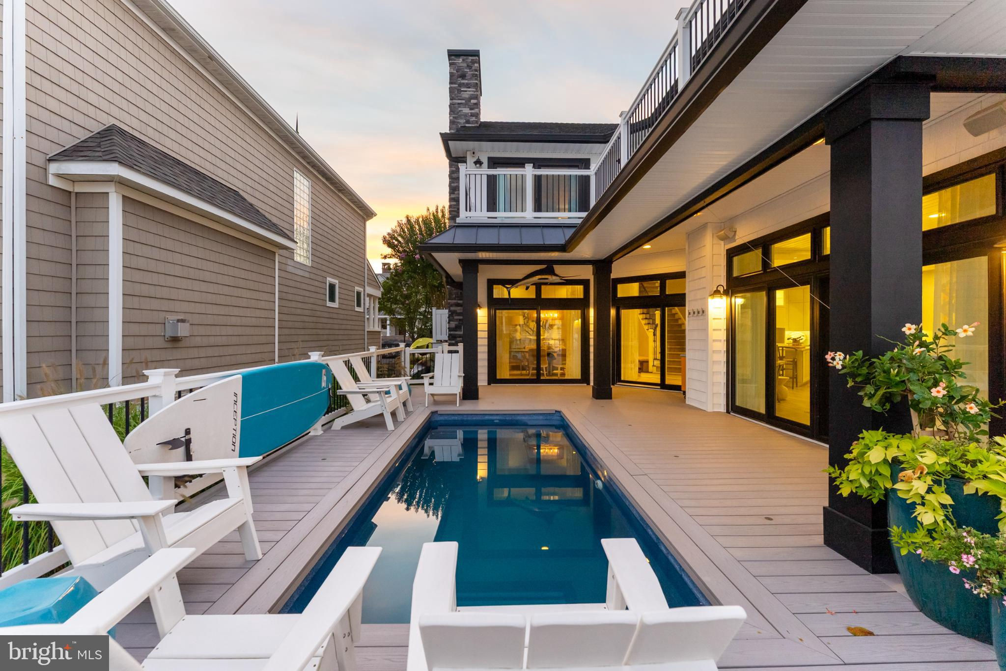 Riviera waterfront • Heated saltwater pool • Three boat slips • Reimagined 2020 • Quartz kitchen • 12’ ceilings • Outdoor kitchen + firepit • Furnished designer interior Life in Ocean City’s prestigious Riviera section offers a rare blend of serenity and sophistication. Just a few hundred yards from the Intracoastal Waterway, this lagoon-front residence spans roughly 3,400 square feet of refined coastal design. Reimagined in 2020, the home blends fresh coastal materials with enduring craftsmanship. Twelve-foot ceilings and open sightlines define the main level, creating an atmosphere of volume and light. Every detail—from architectural millwork to designer lighting—reflects thoughtful design and timeless quality. The kitchen showcases quartz countertops, a subway-tile backsplash, and a long central island designed for both cooking and gathering. Premium features include a Scotsman ice maker and built-in wine chiller, ideal for entertaining. Open to the living and dining areas, the kitchen captures shimmering lagoon views through walls of glass that blur the line between indoors and out. Practical touches include both an upstairs laundry room and a main-level laundry closet off the mudroom—perfect for rinsing beach towels or simplifying everyday living. Subtle coastal hues, custom window treatments, and designer furnishings bring a relaxed sense of polish throughout. Whether entertaining on the deck or enjoying quiet mornings by the lagoon, every space feels connected to the water. The primary suite overlooks the lagoon, with a sliding glass door that opens directly onto a deck positioned for sweeping water views. A vaulted ceiling enhances the sense of height and light, while a sitting area, oversized walk-in closet, and spa-style bath create a tranquil retreat that celebrates the home’s waterfront setting. Outdoors, the property becomes a private waterfront sanctuary. A heated saltwater pool anchors the setting beside a full outdoor kitchen and built-in gas firepit. The expansive deck invites alfresco dining, while three floating slips extend directly into the lagoon—ideal for boating, paddleboarding, or sunset cruises. Located within the sought-after Riviera section and just minutes from Ocean City’s beaches, marinas, and boardwalk, this property pairs comfort and convenience in equal measure. A two-car garage, updated systems, dual laundries, and curated 2020 finishes complete this exceptional offering. 2019 Glenwood Drive delivers waterfront elegance and turnkey ease on one of the island’s most desirable streets—a home where refined design meets effortless coastal living.