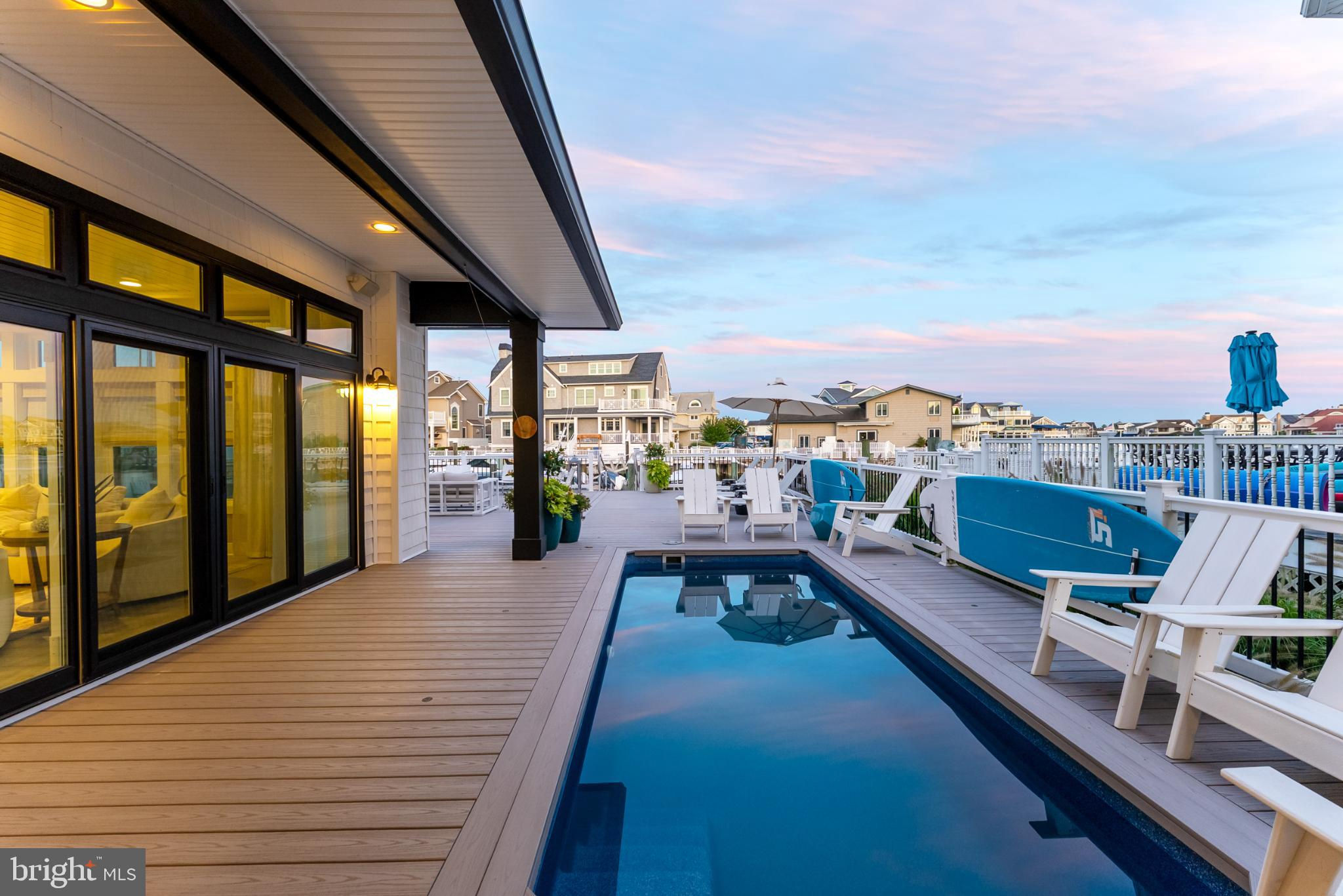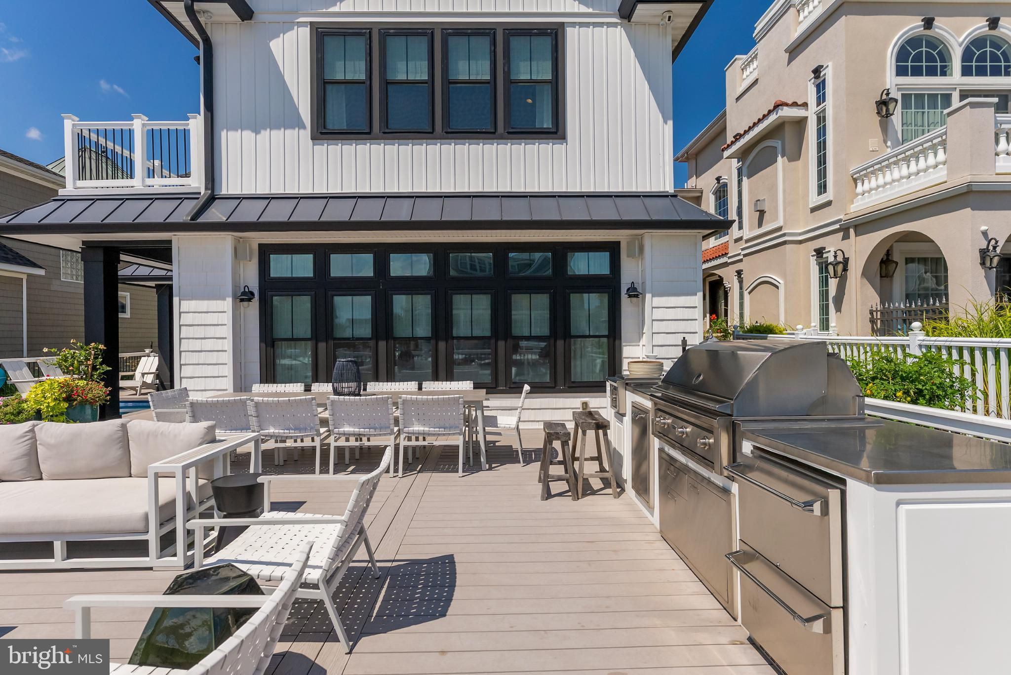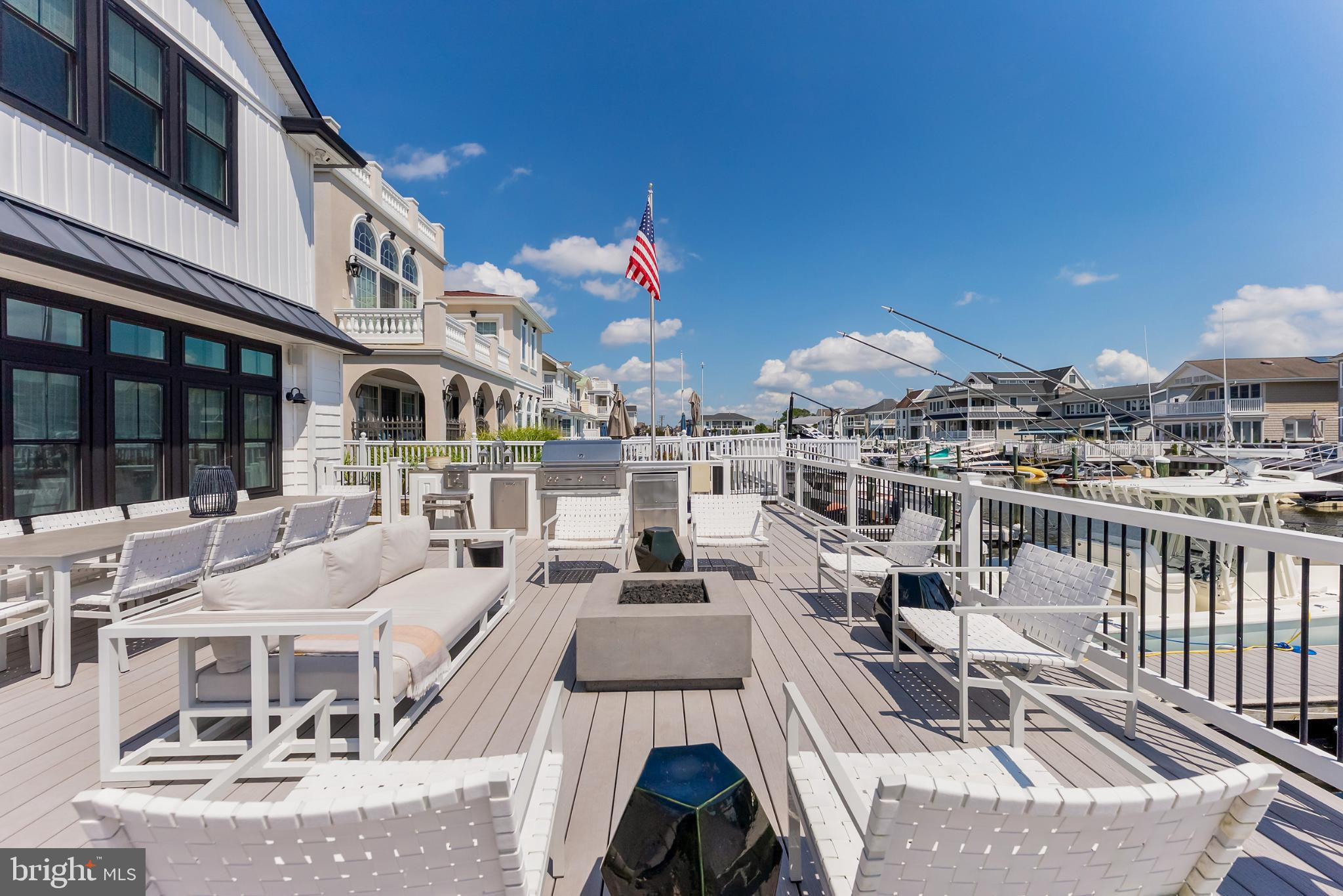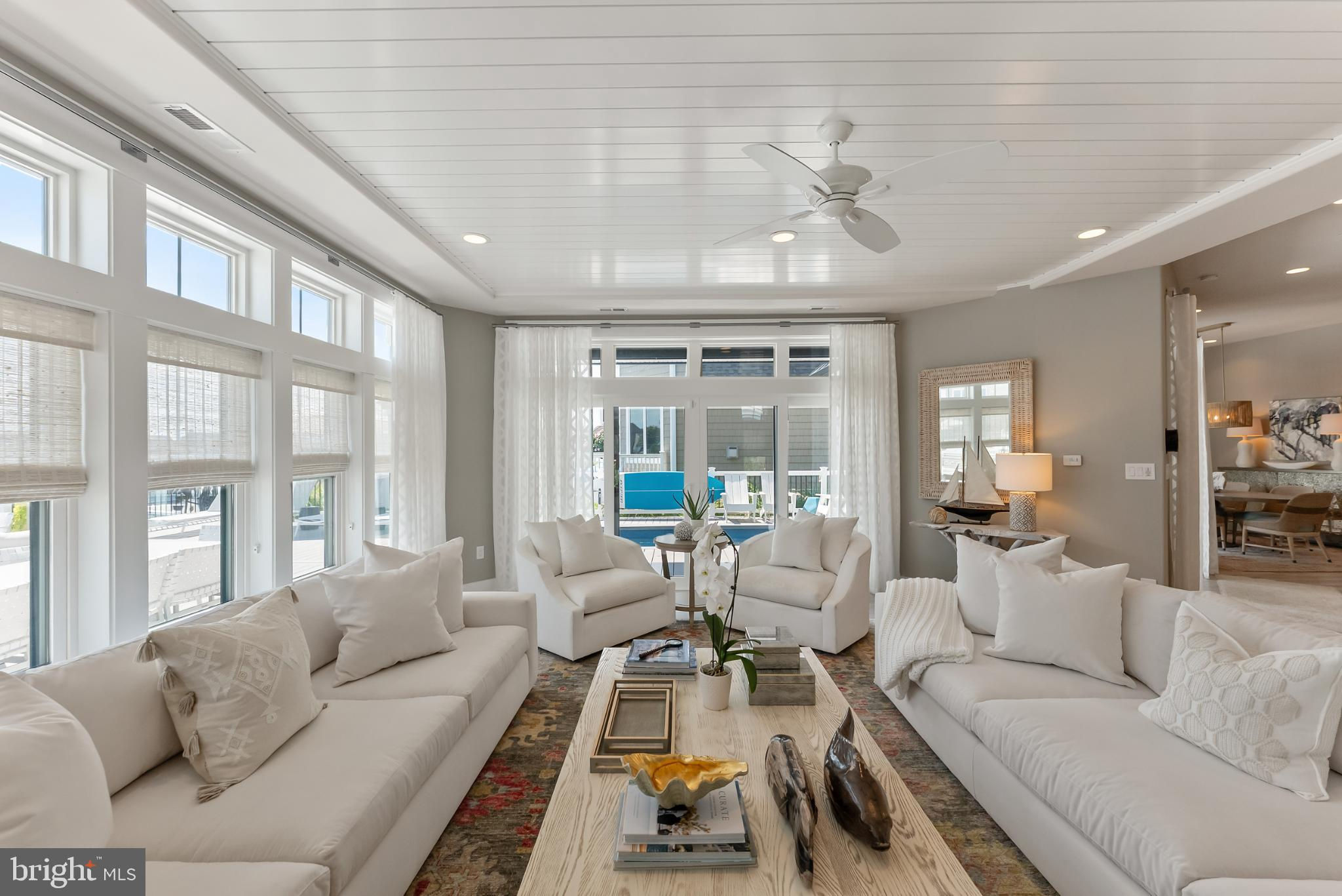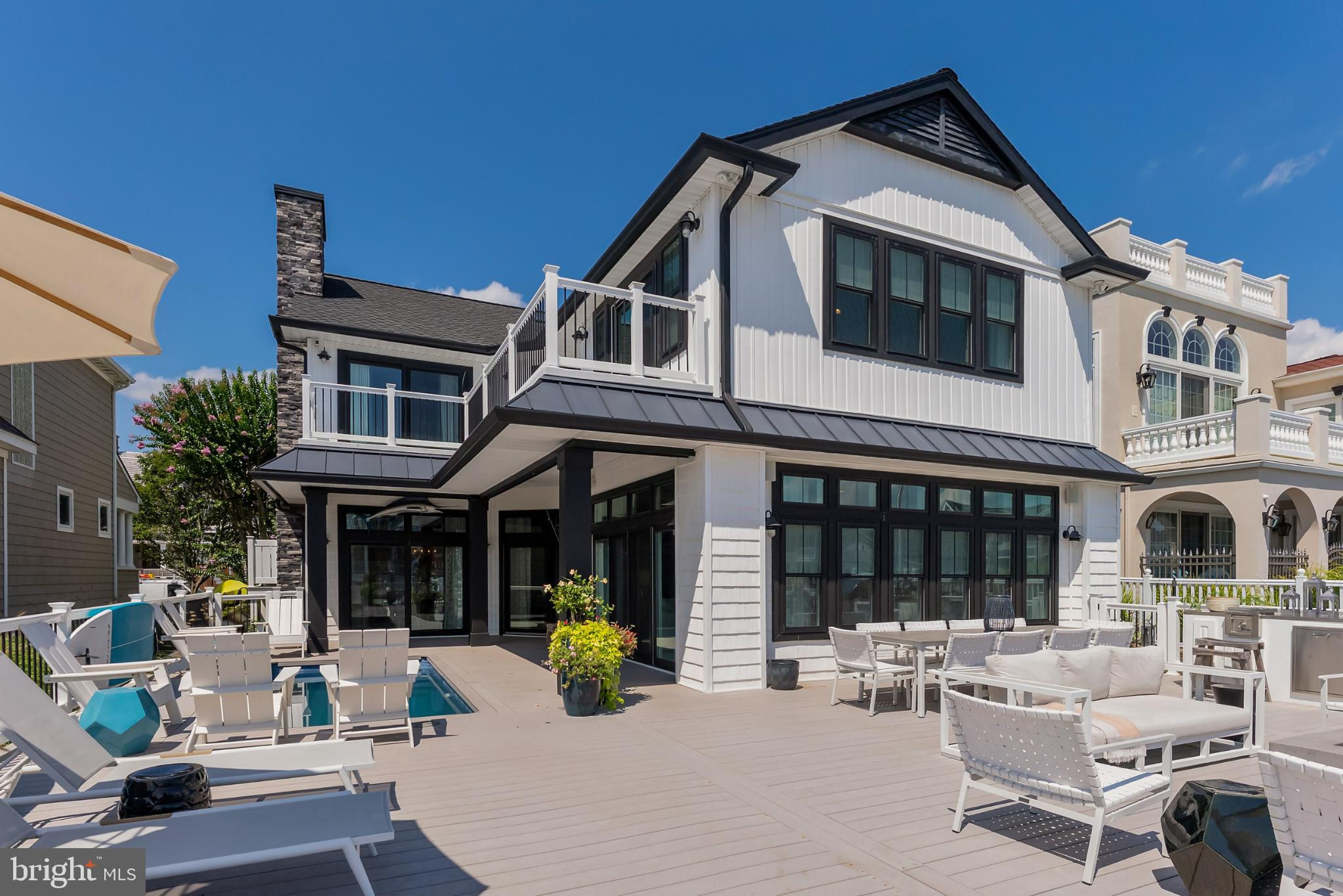 Riviera waterfront • Heated saltwater pool • Three boat slips • Reimagined 2020 • Quartz kitchen • 12’ ceilings • Outdoor kitchen + firepit • Furnished designer interior Life in Ocean City’s prestigious Riviera section offers a rare blend of serenity and sophistication. Just a few hundred yards from the Intracoastal Waterway, this lagoon-front residence spans roughly 3,400 square feet of refined coastal design. Reimagined in 2020, the home blends fresh coastal materials with enduring craftsmanship. Twelve-foot ceilings and open sightlines define the main level, creating an atmosphere of volume and light. Every detail—from architectural millwork to designer lighting—reflects thoughtful design and timeless quality. The kitchen showcases quartz countertops, a subway-tile backsplash, and a long central island designed for both cooking and gathering. Premium features include a Scotsman ice maker and built-in wine chiller, ideal for entertaining. Open to the living and dining areas, the kitchen captures shimmering lagoon views through walls of glass that blur the line between indoors and out. Practical touches include both an upstairs laundry room and a main-level laundry closet off the mudroom—perfect for rinsing beach towels or simplifying everyday living. Subtle coastal hues, custom window treatments, and designer furnishings bring a relaxed sense of polish throughout. Whether entertaining on the deck or enjoying quiet mornings by the lagoon, every space feels connected to the water. The primary suite overlooks the lagoon, with a sliding glass door that opens directly onto a deck positioned for sweeping water views. A vaulted ceiling enhances the sense of height and light, while a sitting area, oversized walk-in closet, and spa-style bath create a tranquil retreat that celebrates the home’s waterfront setting. Outdoors, the property becomes a private waterfront sanctuary. A heated saltwater pool anchors the setting beside a full outdoor kitchen and built-in gas firepit. The expansive deck invites alfresco dining, while three floating slips extend directly into the lagoon—ideal for boating, paddleboarding, or sunset cruises. Located within the sought-after Riviera section and just minutes from Ocean City’s beaches, marinas, and boardwalk, this property pairs comfort and convenience in equal measure. A two-car garage, updated systems, dual laundries, and curated 2020 finishes complete this exceptional offering. 2019 Glenwood Drive delivers waterfront elegance and turnkey ease on one of the island’s most desirable streets—a home where refined design meets effortless coastal living.