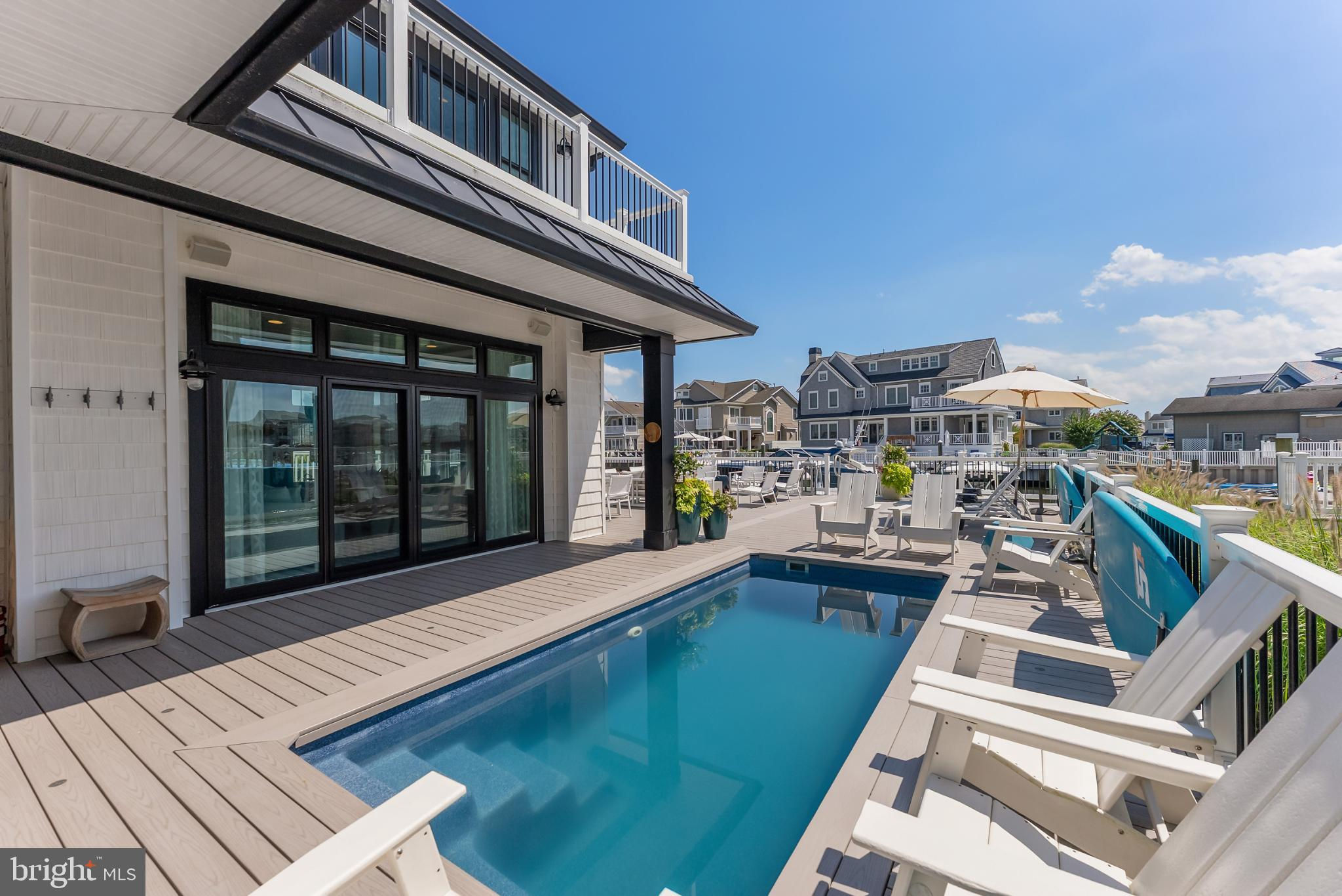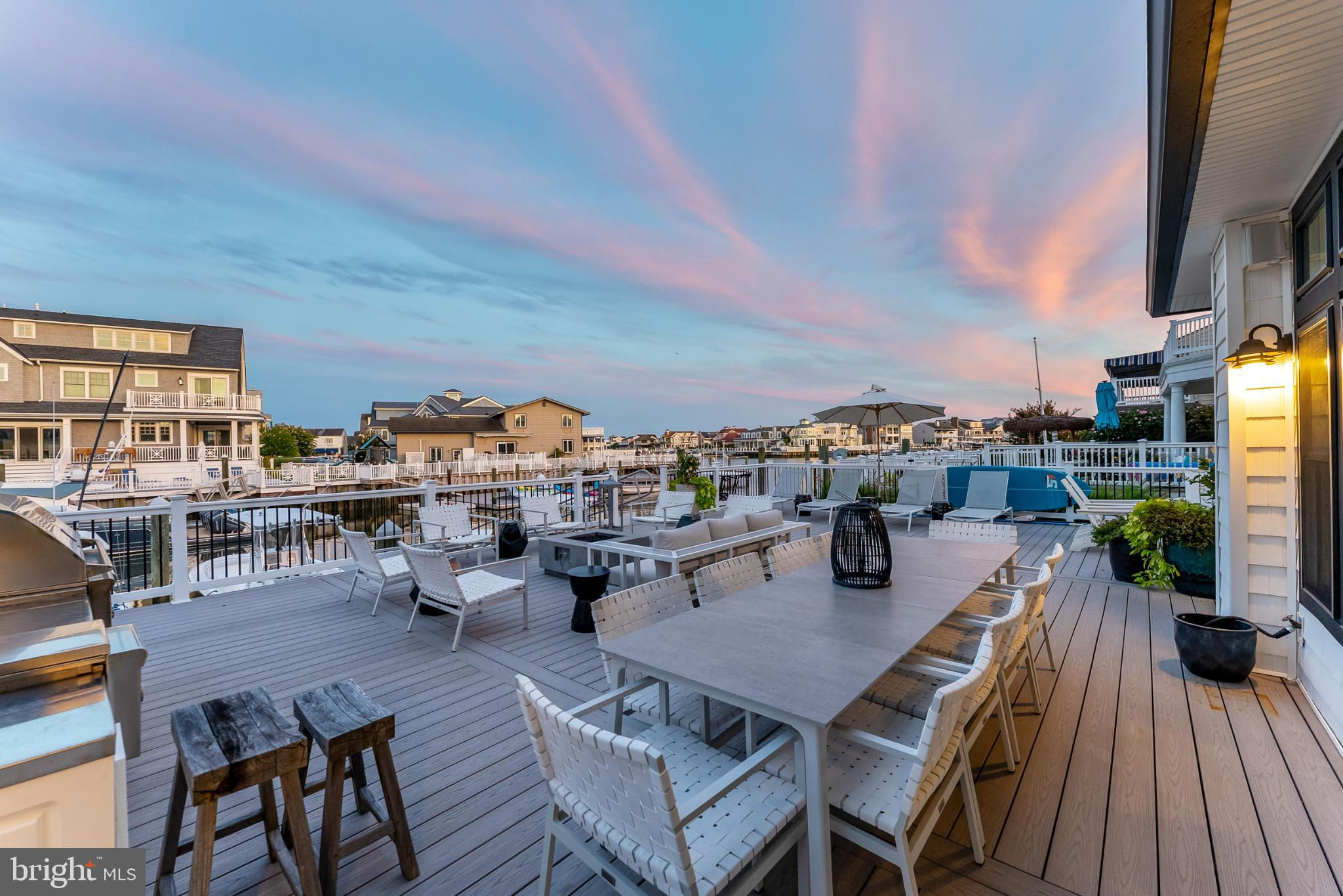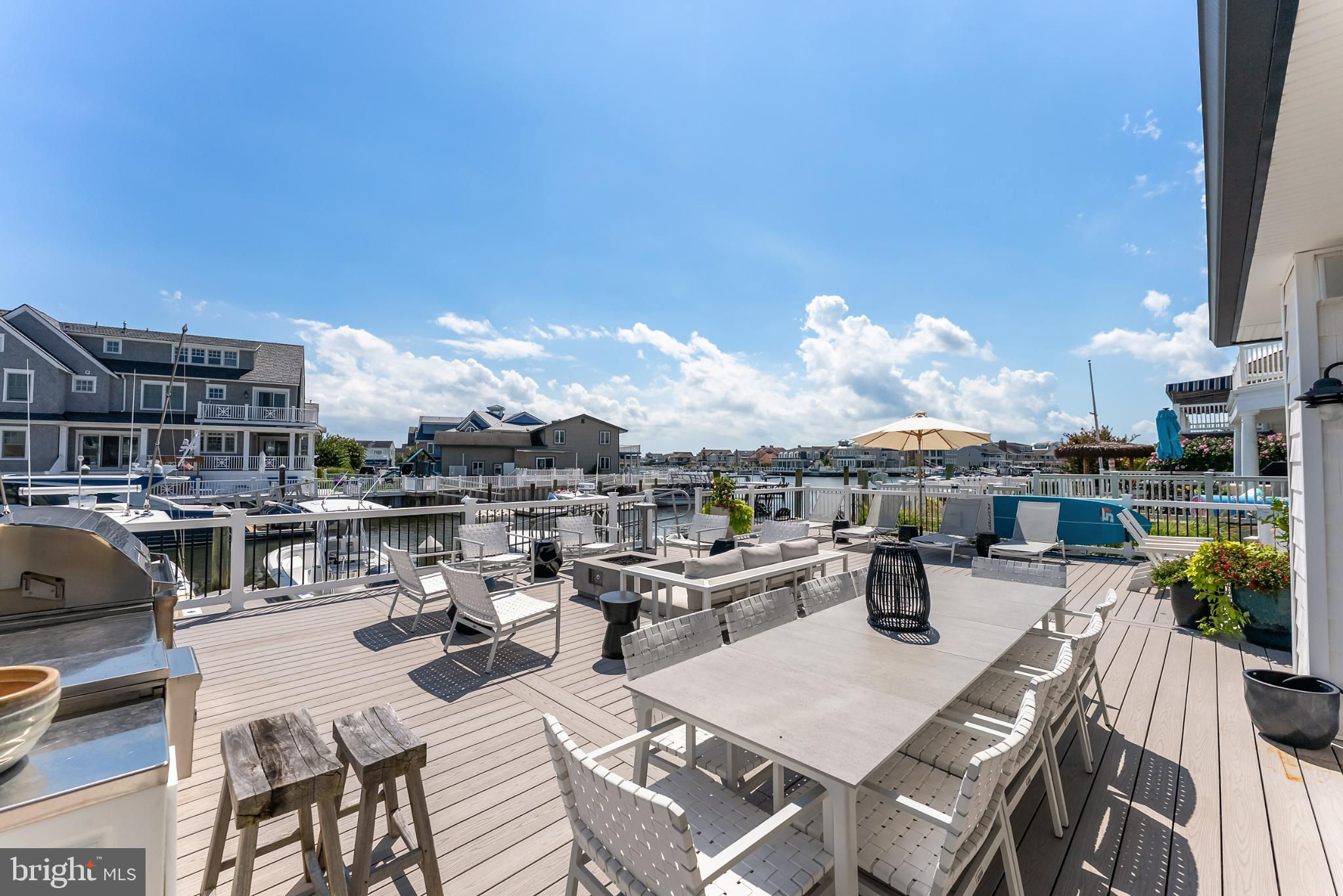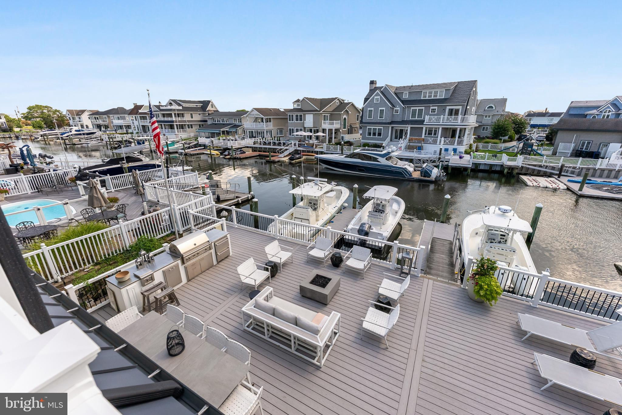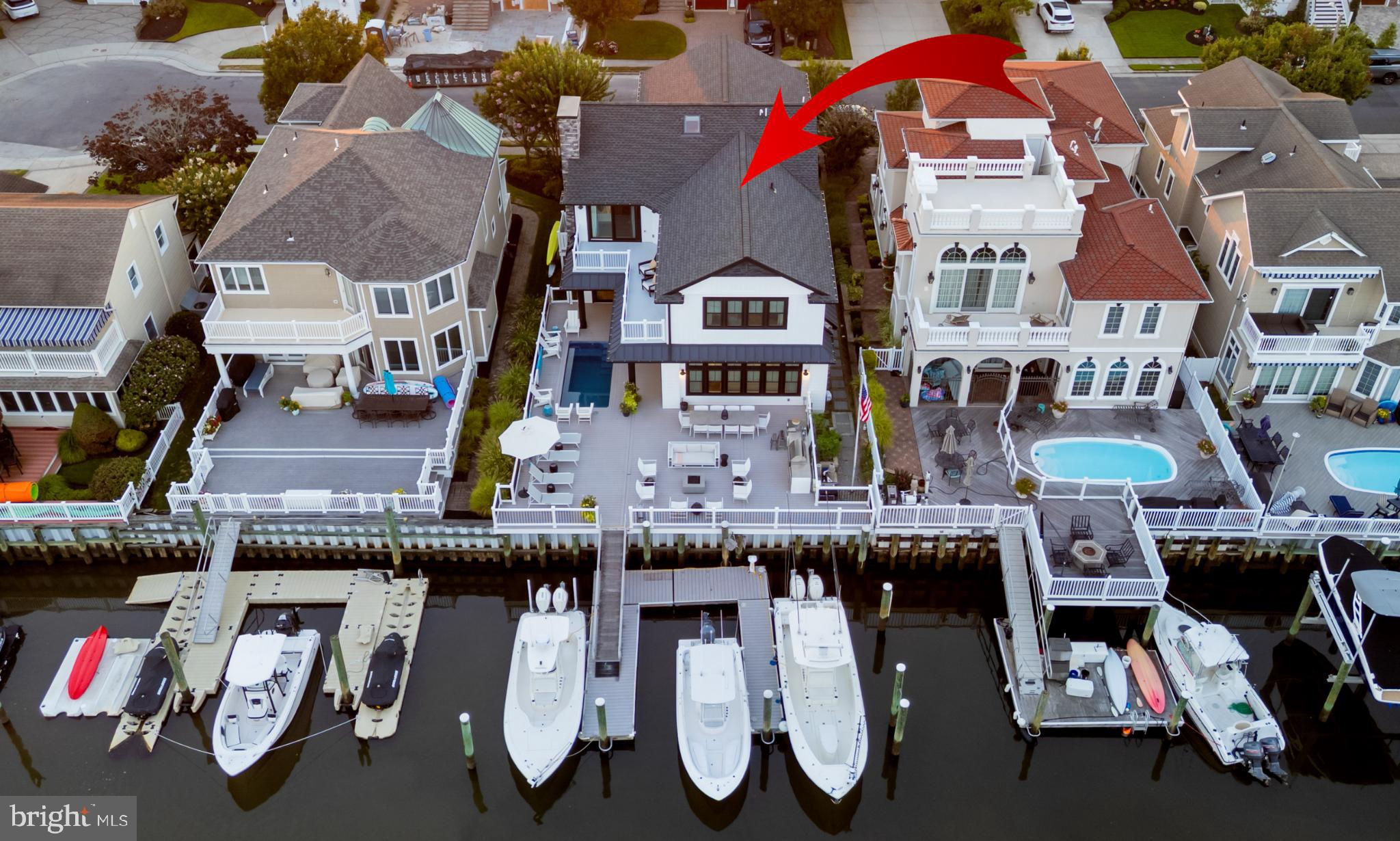 Riviera waterfront • Heated saltwater pool • Three boat slips • Reimagined 2020 • Quartz kitchen • 12’ ceilings • Outdoor kitchen + firepit • Furnished designer interior Life in Ocean City’s prestigious Riviera section offers a rare blend of serenity and sophistication. Just a few hundred yards from the Intracoastal Waterway, this lagoon-front residence spans roughly 3,400 square feet of refined coastal design. Reimagined in 2020, the home blends fresh coastal materials with enduring craftsmanship. Twelve-foot ceilings and open sightlines define the main level, creating an atmosphere of volume and light. Every detail—from architectural millwork to designer lighting—reflects thoughtful design and timeless quality. The kitchen showcases quartz countertops, a subway-tile backsplash, and a long central island designed for both cooking and gathering. Premium features include a Scotsman ice maker and built-in wine chiller, ideal for entertaining. Open to the living and dining areas, the kitchen captures shimmering lagoon views through walls of glass that blur the line between indoors and out. Practical touches include both an upstairs laundry room and a main-level laundry closet off the mudroom—perfect for rinsing beach towels or simplifying everyday living. Subtle coastal hues, custom window treatments, and designer furnishings bring a relaxed sense of polish throughout. Whether entertaining on the deck or enjoying quiet mornings by the lagoon, every space feels connected to the water. The primary suite overlooks the lagoon, with a sliding glass door that opens directly onto a deck positioned for sweeping water views. A vaulted ceiling enhances the sense of height and light, while a sitting area, oversized walk-in closet, and spa-style bath create a tranquil retreat that celebrates the home’s waterfront setting. Outdoors, the property becomes a private waterfront sanctuary. A heated saltwater pool anchors the setting beside a full outdoor kitchen and built-in gas firepit. The expansive deck invites alfresco dining, while three floating slips extend directly into the lagoon—ideal for boating, paddleboarding, or sunset cruises. Located within the sought-after Riviera section and just minutes from Ocean City’s beaches, marinas, and boardwalk, this property pairs comfort and convenience in equal measure. A two-car garage, updated systems, dual laundries, and curated 2020 finishes complete this exceptional offering. 2019 Glenwood Drive delivers waterfront elegance and turnkey ease on one of the island’s most desirable streets—a home where refined design meets effortless coastal living.