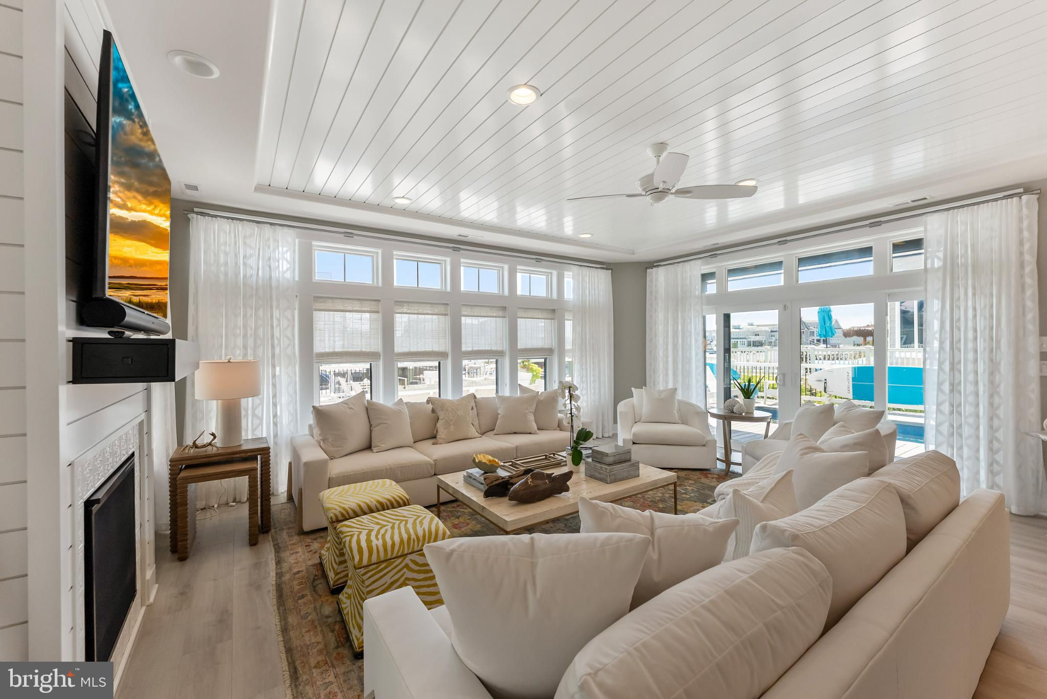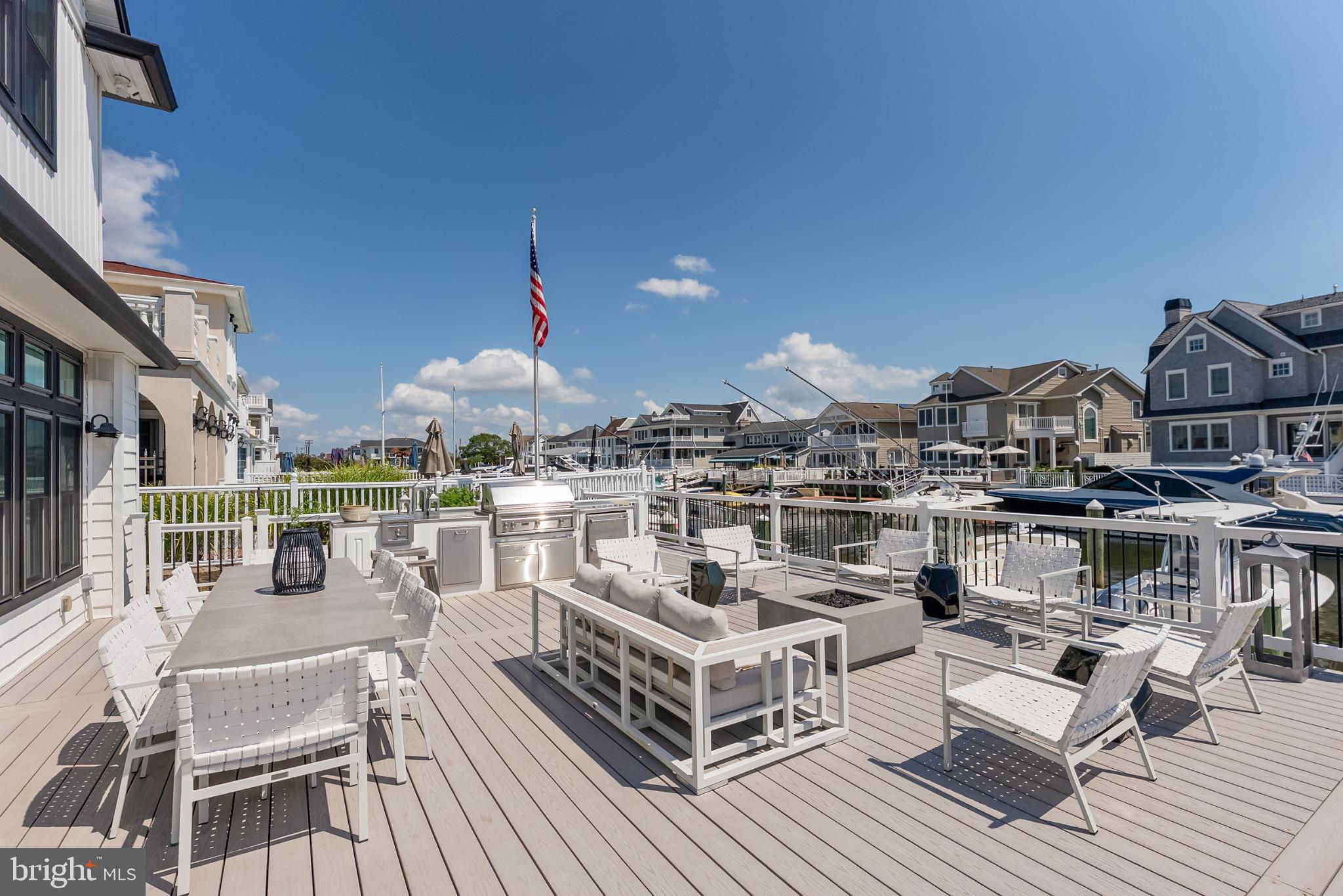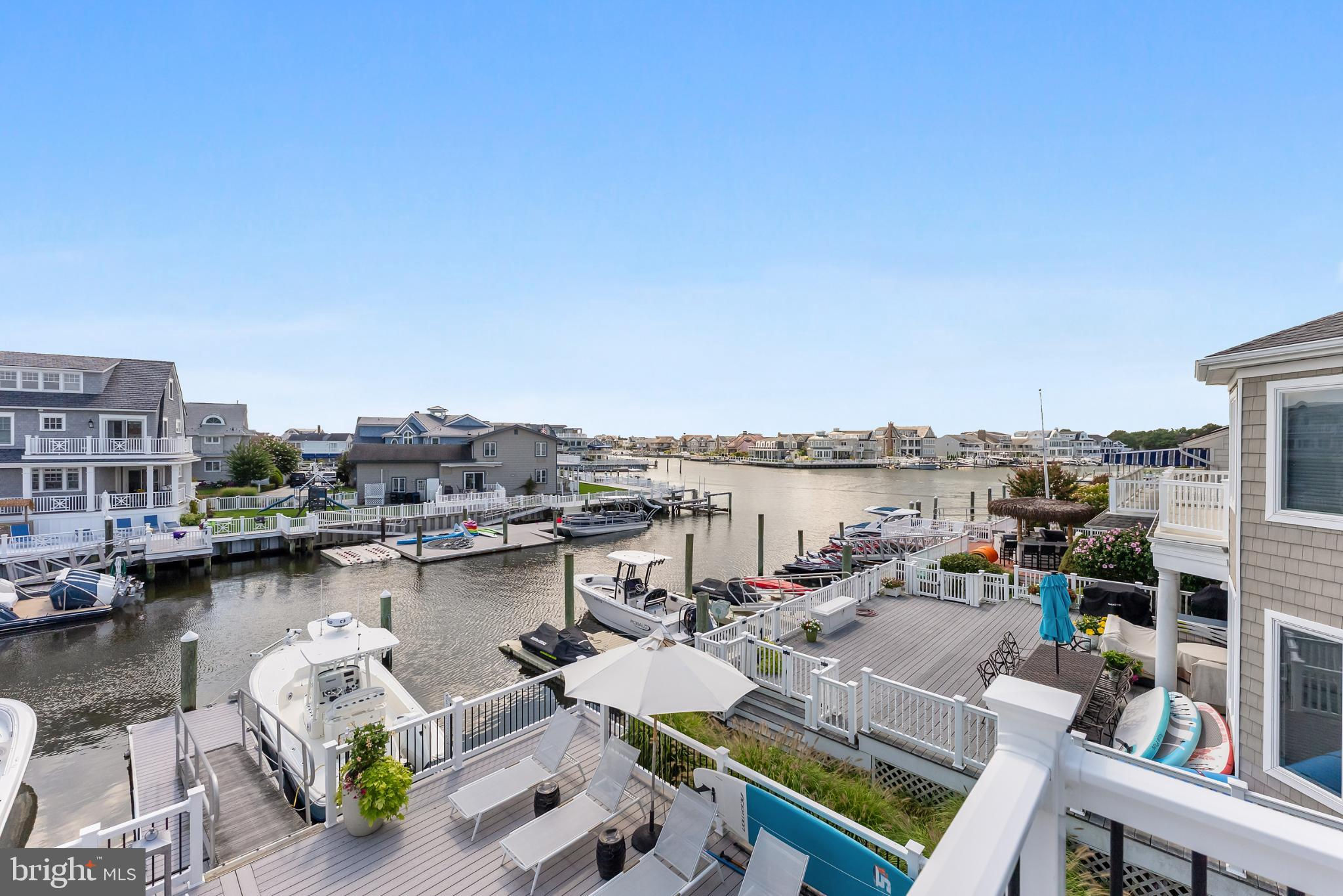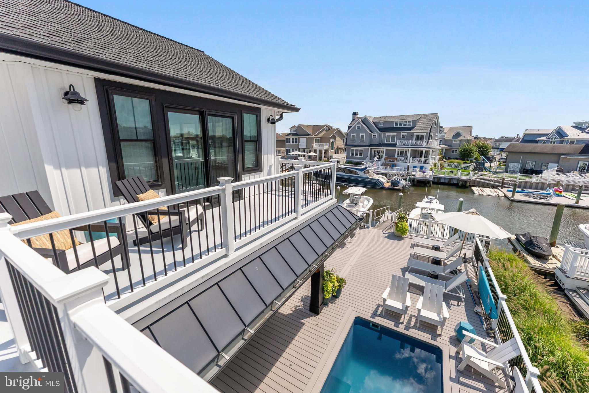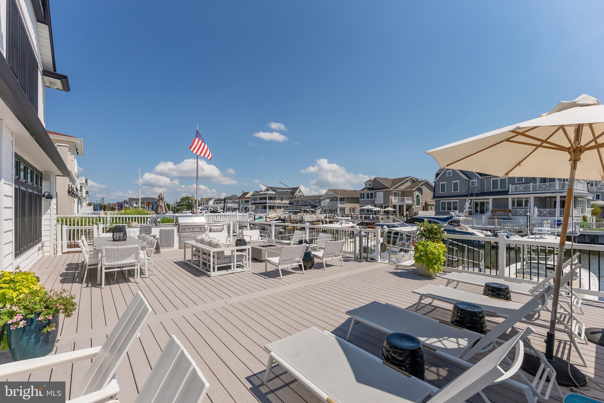 Riviera waterfront • Heated saltwater pool • Three boat slips • Reimagined 2020 • Quartz kitchen • 12’ ceilings • Outdoor kitchen + firepit • Furnished designer interior Life in Ocean City’s prestigious Riviera section offers a rare blend of serenity and sophistication. Just a few hundred yards from the Intracoastal Waterway, this lagoon-front residence spans roughly 3,400 square feet of refined coastal design. Reimagined in 2020, the home blends fresh coastal materials with enduring craftsmanship. Twelve-foot ceilings and open sightlines define the main level, creating an atmosphere of volume and light. Every detail—from architectural millwork to designer lighting—reflects thoughtful design and timeless quality. The kitchen showcases quartz countertops, a subway-tile backsplash, and a long central island designed for both cooking and gathering. Premium features include a Scotsman ice maker and built-in wine chiller, ideal for entertaining. Open to the living and dining areas, the kitchen captures shimmering lagoon views through walls of glass that blur the line between indoors and out. Practical touches include both an upstairs laundry room and a main-level laundry closet off the mudroom—perfect for rinsing beach towels or simplifying everyday living. Subtle coastal hues, custom window treatments, and designer furnishings bring a relaxed sense of polish throughout. Whether entertaining on the deck or enjoying quiet mornings by the lagoon, every space feels connected to the water. The primary suite overlooks the lagoon, with a sliding glass door that opens directly onto a deck positioned for sweeping water views. A vaulted ceiling enhances the sense of height and light, while a sitting area, oversized walk-in closet, and spa-style bath create a tranquil retreat that celebrates the home’s waterfront setting. Outdoors, the property becomes a private waterfront sanctuary. A heated saltwater pool anchors the setting beside a full outdoor kitchen and built-in gas firepit. The expansive deck invites alfresco dining, while three floating slips extend directly into the lagoon—ideal for boating, paddleboarding, or sunset cruises. Located within the sought-after Riviera section and just minutes from Ocean City’s beaches, marinas, and boardwalk, this property pairs comfort and convenience in equal measure. A two-car garage, updated systems, dual laundries, and curated 2020 finishes complete this exceptional offering. 2019 Glenwood Drive delivers waterfront elegance and turnkey ease on one of the island’s most desirable streets—a home where refined design meets effortless coastal living.