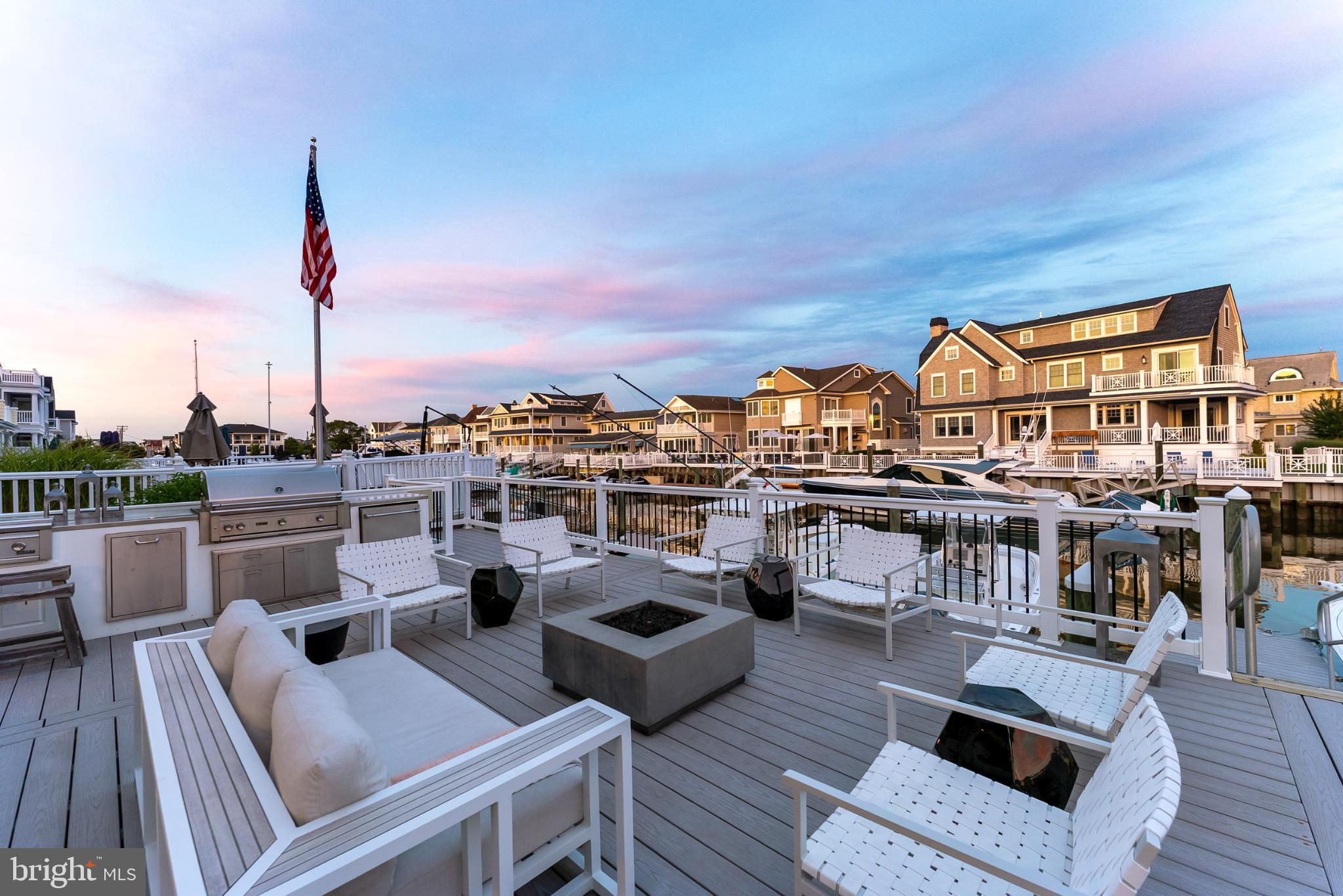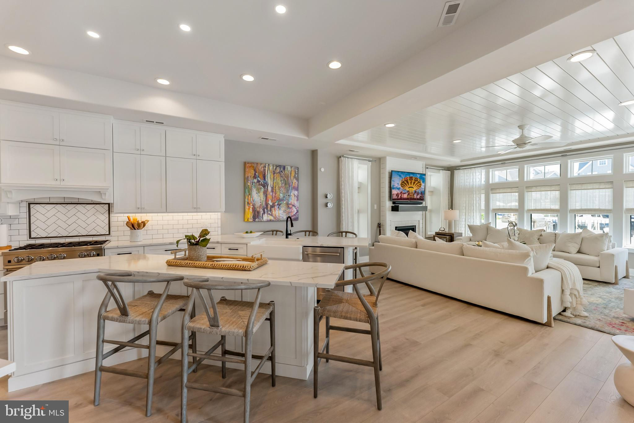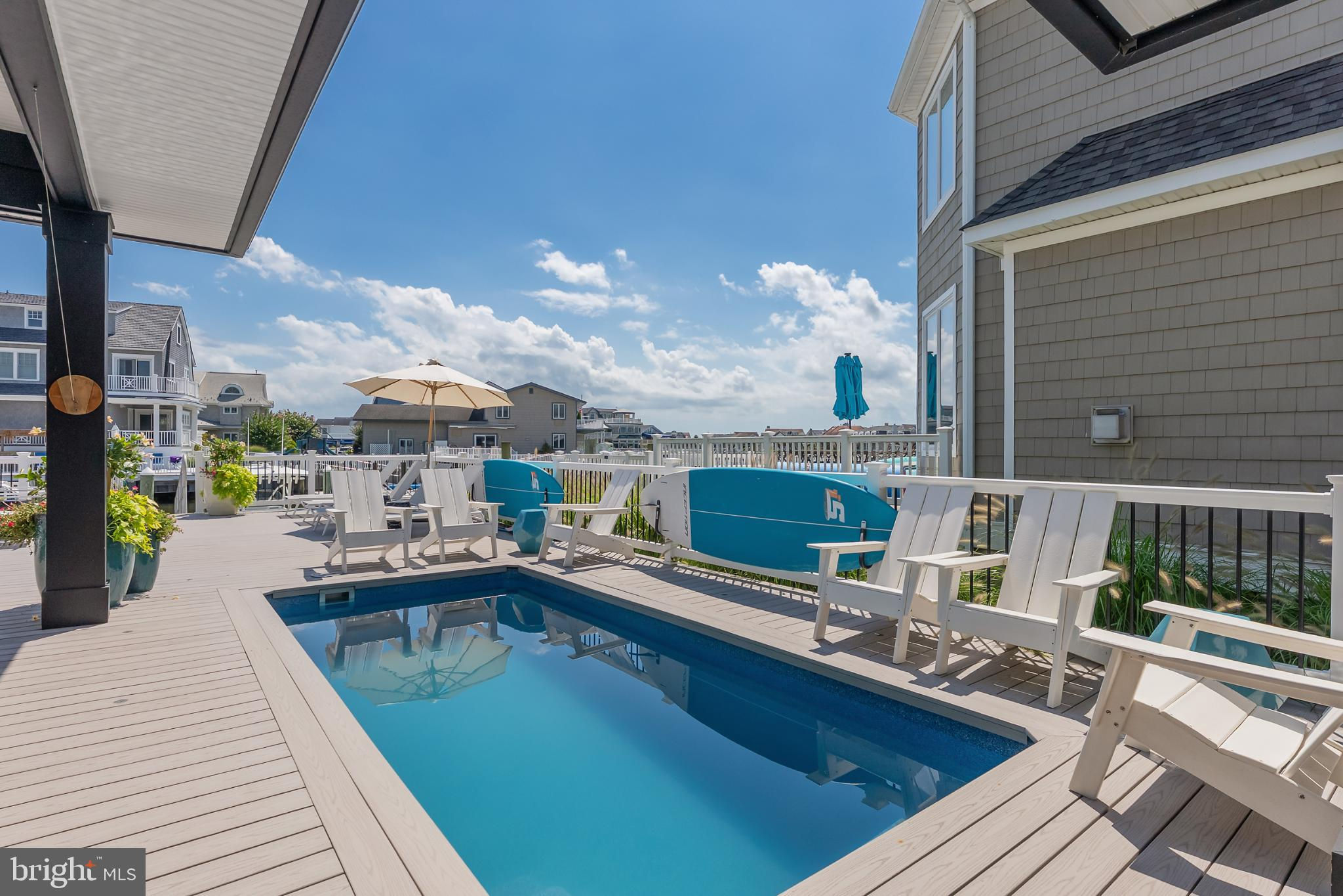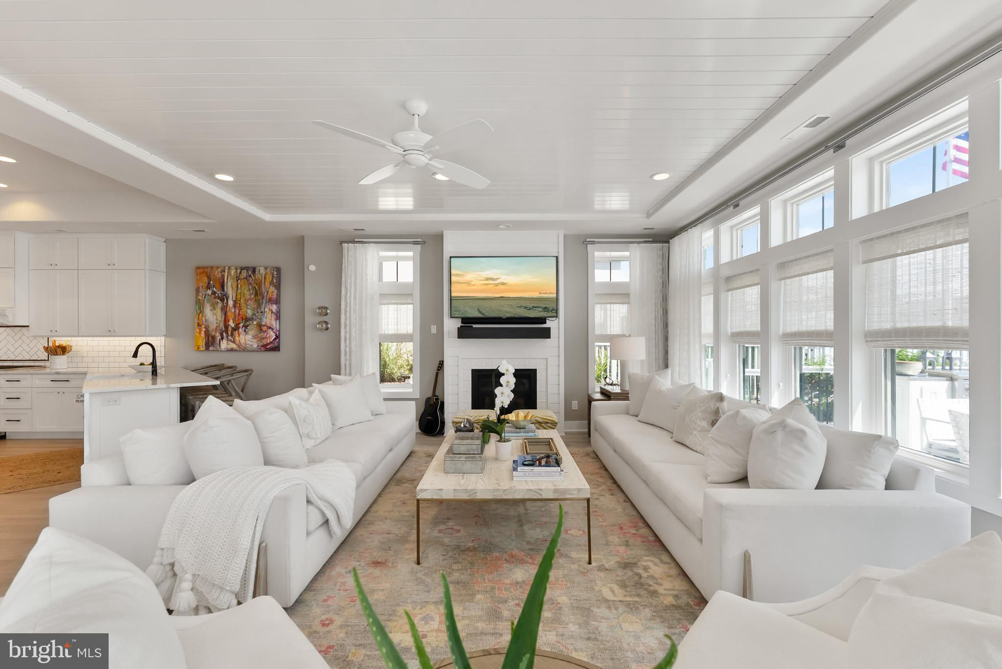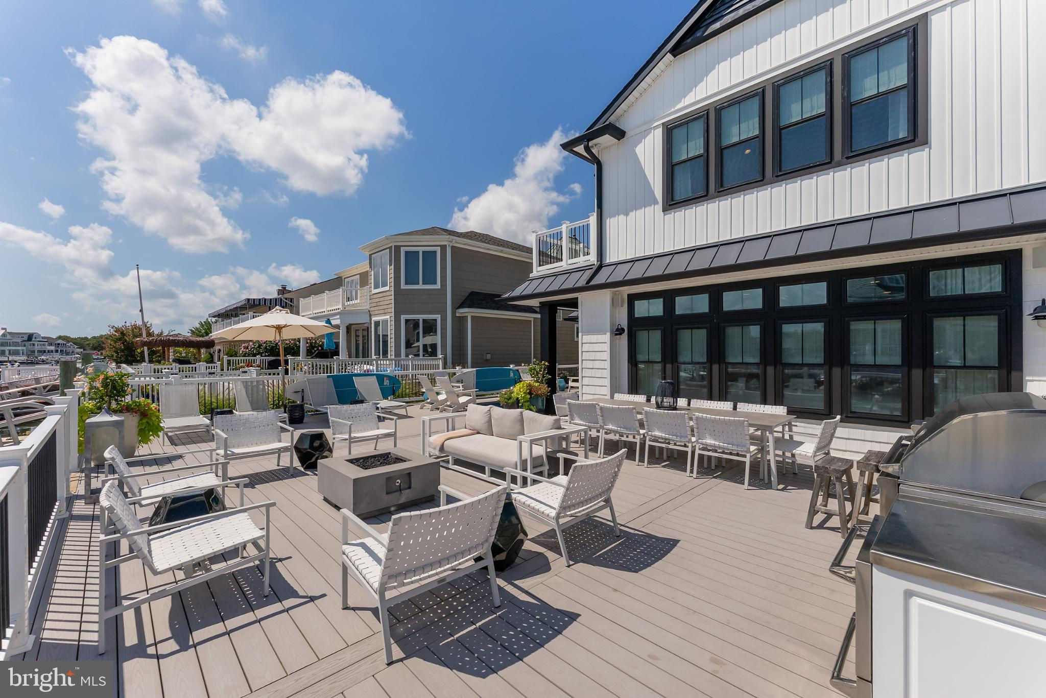 Riviera waterfront • Heated saltwater pool • Three boat slips • Reimagined 2020 • Quartz kitchen • 12’ ceilings • Outdoor kitchen + firepit • Furnished designer interior Life in Ocean City’s prestigious Riviera section offers a rare blend of serenity and sophistication. Just a few hundred yards from the Intracoastal Waterway, this lagoon-front residence spans roughly 3,400 square feet of refined coastal design. Reimagined in 2020, the home blends fresh coastal materials with enduring craftsmanship. Twelve-foot ceilings and open sightlines define the main level, creating an atmosphere of volume and light. Every detail—from architectural millwork to designer lighting—reflects thoughtful design and timeless quality. The kitchen showcases quartz countertops, a subway-tile backsplash, and a long central island designed for both cooking and gathering. Premium features include a Scotsman ice maker and built-in wine chiller, ideal for entertaining. Open to the living and dining areas, the kitchen captures shimmering lagoon views through walls of glass that blur the line between indoors and out. Practical touches include both an upstairs laundry room and a main-level laundry closet off the mudroom—perfect for rinsing beach towels or simplifying everyday living. Subtle coastal hues, custom window treatments, and designer furnishings bring a relaxed sense of polish throughout. Whether entertaining on the deck or enjoying quiet mornings by the lagoon, every space feels connected to the water. The primary suite overlooks the lagoon, with a sliding glass door that opens directly onto a deck positioned for sweeping water views. A vaulted ceiling enhances the sense of height and light, while a sitting area, oversized walk-in closet, and spa-style bath create a tranquil retreat that celebrates the home’s waterfront setting. Outdoors, the property becomes a private waterfront sanctuary. A heated saltwater pool anchors the setting beside a full outdoor kitchen and built-in gas firepit. The expansive deck invites alfresco dining, while three floating slips extend directly into the lagoon—ideal for boating, paddleboarding, or sunset cruises. Located within the sought-after Riviera section and just minutes from Ocean City’s beaches, marinas, and boardwalk, this property pairs comfort and convenience in equal measure. A two-car garage, updated systems, dual laundries, and curated 2020 finishes complete this exceptional offering. 2019 Glenwood Drive delivers waterfront elegance and turnkey ease on one of the island’s most desirable streets—a home where refined design meets effortless coastal living.