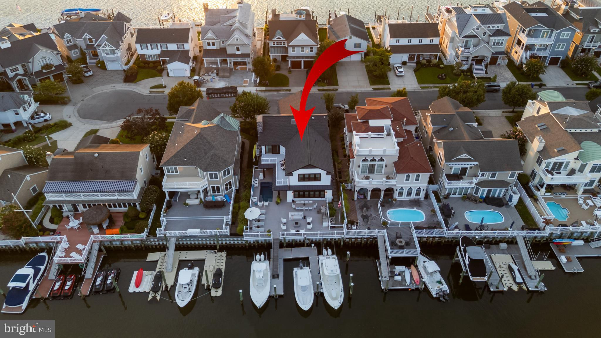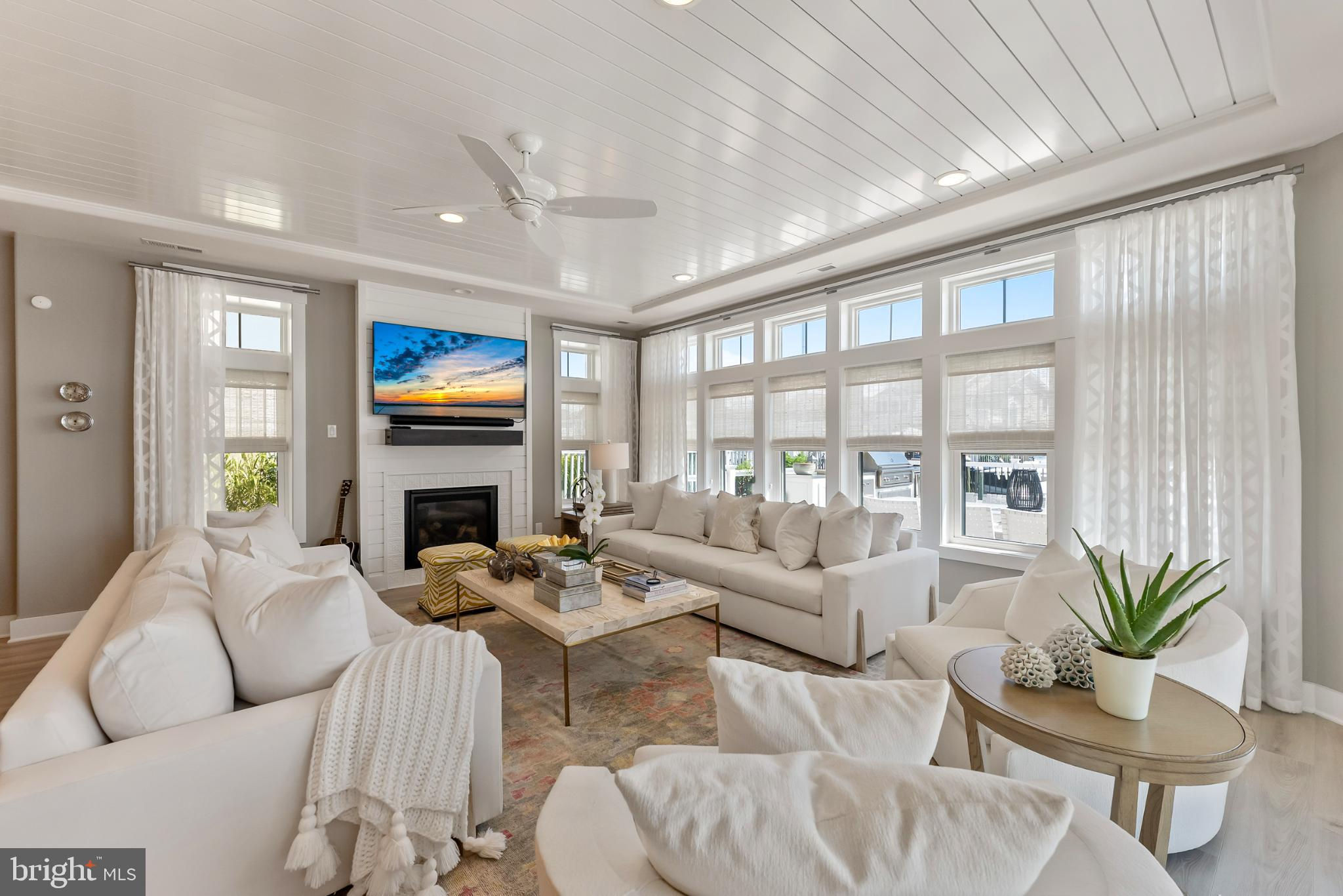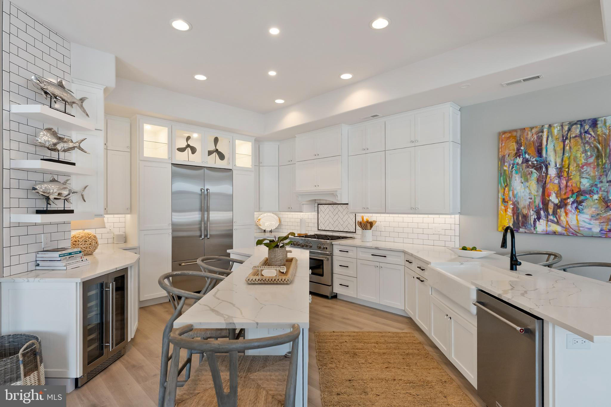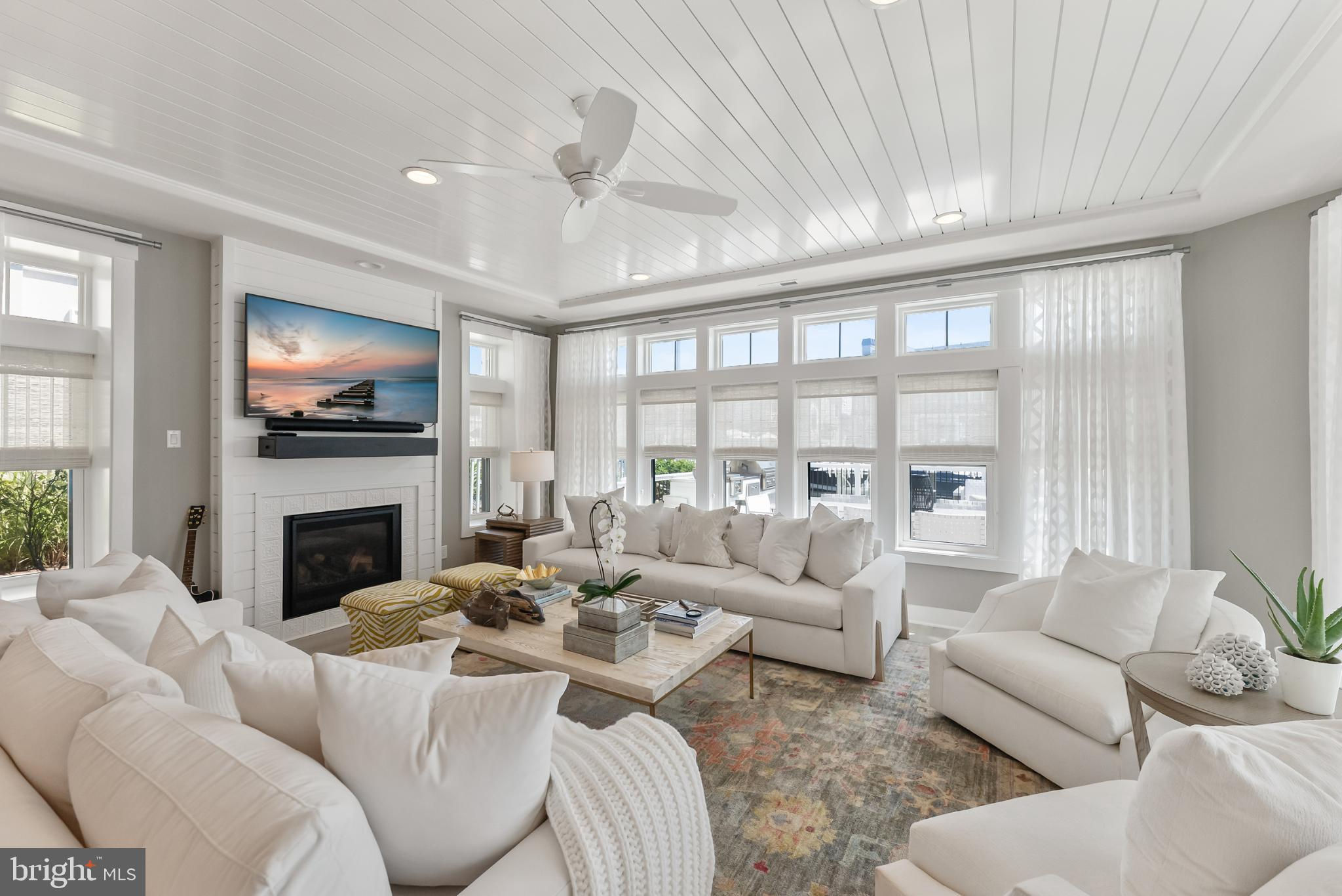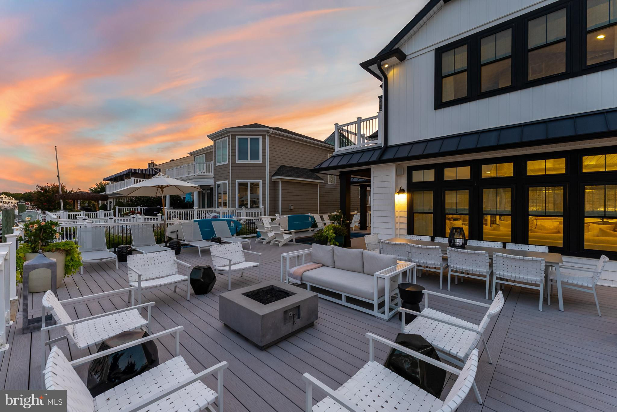 Riviera waterfront • Heated saltwater pool • Three boat slips • Reimagined 2020 • Quartz kitchen • 12’ ceilings • Outdoor kitchen + firepit • Furnished designer interior Life in Ocean City’s prestigious Riviera section offers a rare blend of serenity and sophistication. Just a few hundred yards from the Intracoastal Waterway, this lagoon-front residence spans roughly 3,400 square feet of refined coastal design. Reimagined in 2020, the home blends fresh coastal materials with enduring craftsmanship. Twelve-foot ceilings and open sightlines define the main level, creating an atmosphere of volume and light. Every detail—from architectural millwork to designer lighting—reflects thoughtful design and timeless quality. The kitchen showcases quartz countertops, a subway-tile backsplash, and a long central island designed for both cooking and gathering. Premium features include a Scotsman ice maker and built-in wine chiller, ideal for entertaining. Open to the living and dining areas, the kitchen captures shimmering lagoon views through walls of glass that blur the line between indoors and out. Practical touches include both an upstairs laundry room and a main-level laundry closet off the mudroom—perfect for rinsing beach towels or simplifying everyday living. Subtle coastal hues, custom window treatments, and designer furnishings bring a relaxed sense of polish throughout. Whether entertaining on the deck or enjoying quiet mornings by the lagoon, every space feels connected to the water. The primary suite overlooks the lagoon, with a sliding glass door that opens directly onto a deck positioned for sweeping water views. A vaulted ceiling enhances the sense of height and light, while a sitting area, oversized walk-in closet, and spa-style bath create a tranquil retreat that celebrates the home’s waterfront setting. Outdoors, the property becomes a private waterfront sanctuary. A heated saltwater pool anchors the setting beside a full outdoor kitchen and built-in gas firepit. The expansive deck invites alfresco dining, while three floating slips extend directly into the lagoon—ideal for boating, paddleboarding, or sunset cruises. Located within the sought-after Riviera section and just minutes from Ocean City’s beaches, marinas, and boardwalk, this property pairs comfort and convenience in equal measure. A two-car garage, updated systems, dual laundries, and curated 2020 finishes complete this exceptional offering. 2019 Glenwood Drive delivers waterfront elegance and turnkey ease on one of the island’s most desirable streets—a home where refined design meets effortless coastal living.