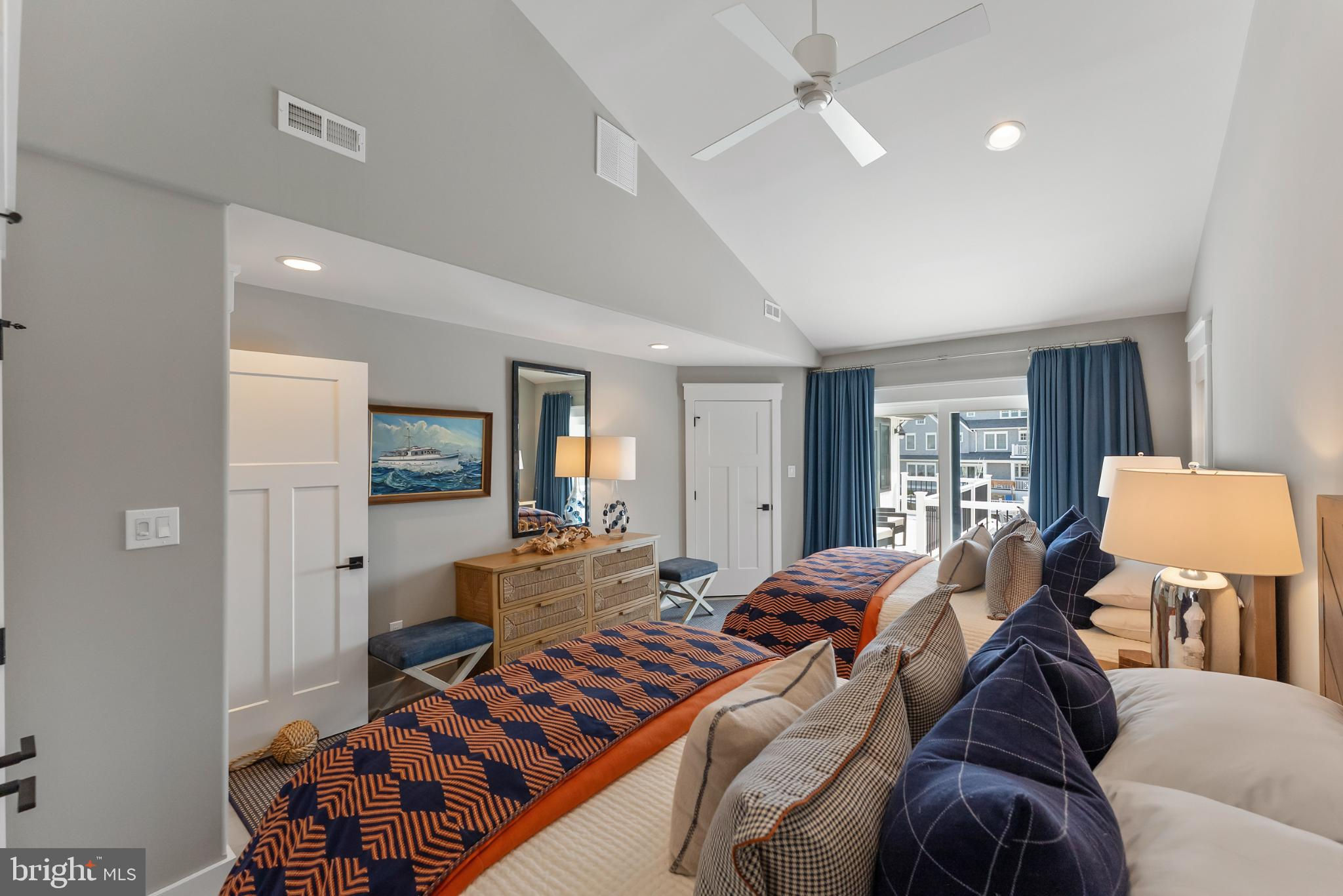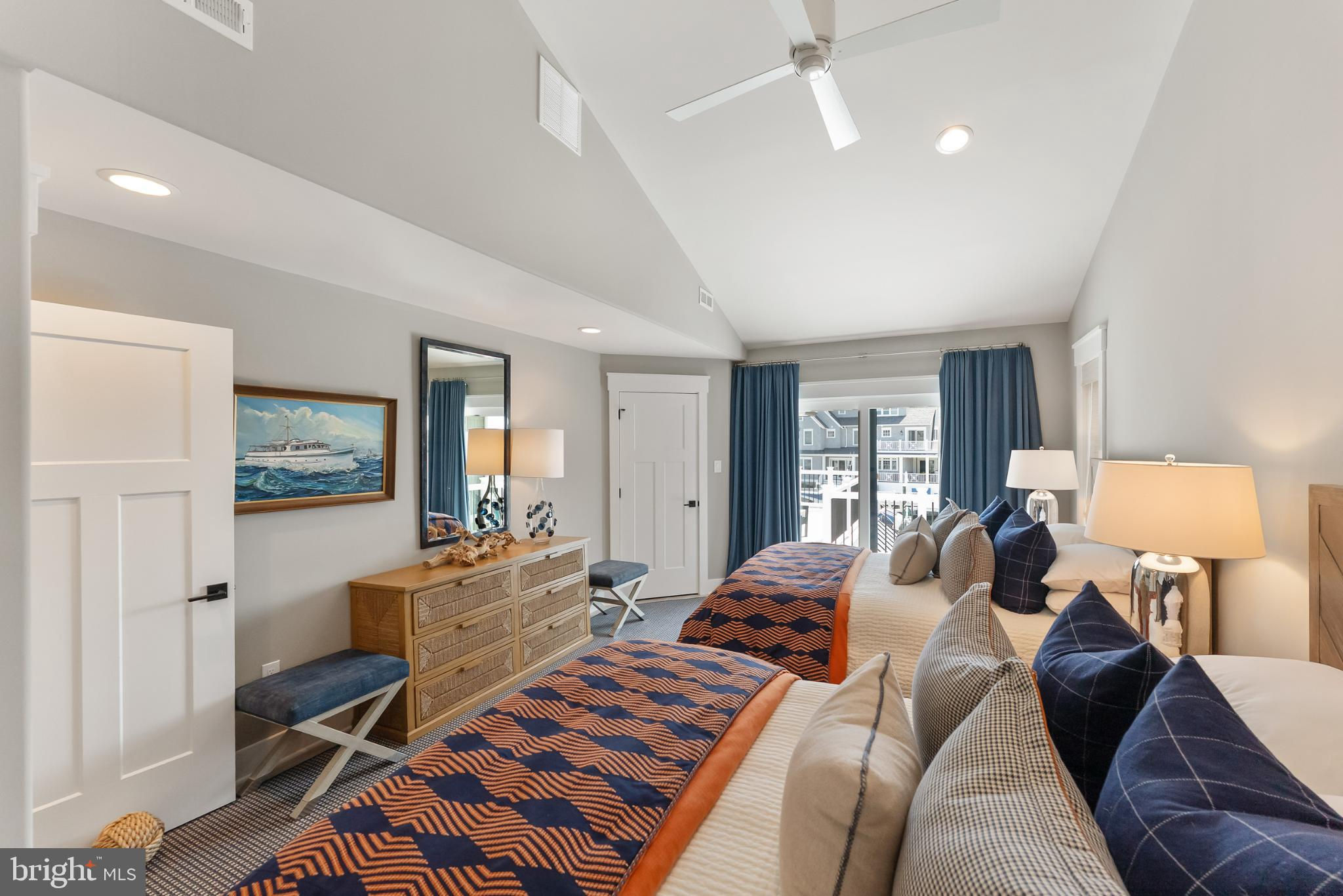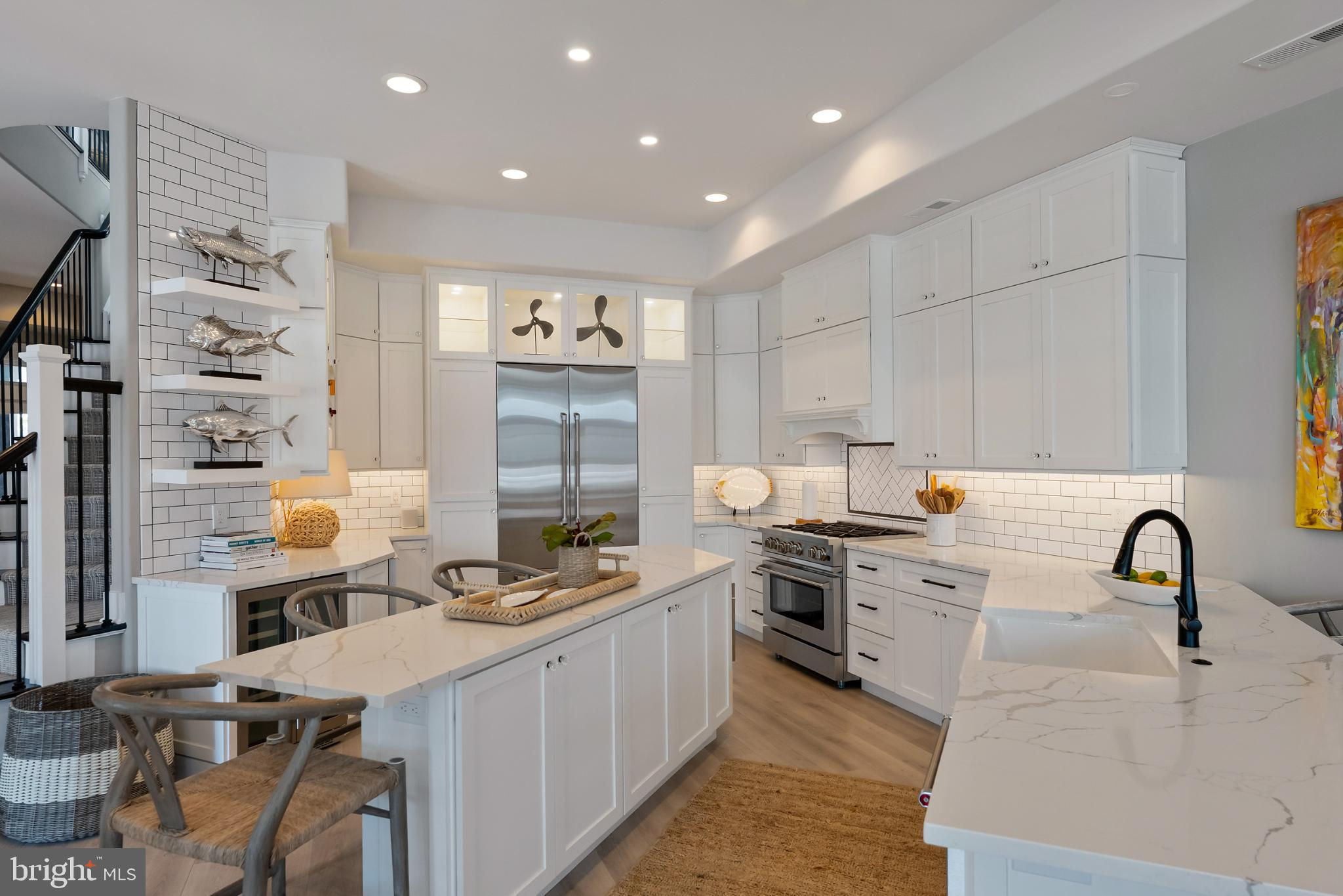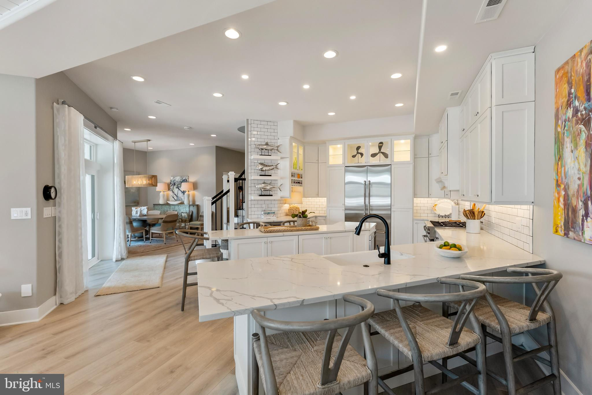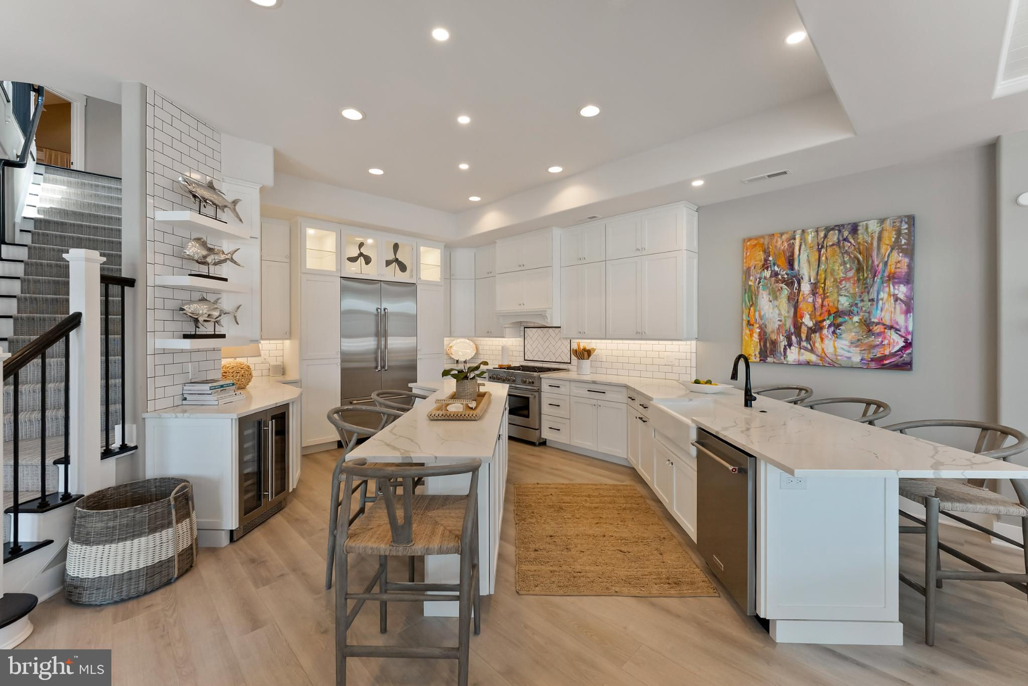 Riviera waterfront • Heated saltwater pool • Three boat slips • Reimagined 2020 • Quartz kitchen • 12’ ceilings • Outdoor kitchen + firepit • Furnished designer interior Life in Ocean City’s prestigious Riviera section offers a rare blend of serenity and sophistication. Just a few hundred yards from the Intracoastal Waterway, this lagoon-front residence spans roughly 3,400 square feet of refined coastal design. Reimagined in 2020, the home blends fresh coastal materials with enduring craftsmanship. Twelve-foot ceilings and open sightlines define the main level, creating an atmosphere of volume and light. Every detail—from architectural millwork to designer lighting—reflects thoughtful design and timeless quality. The kitchen showcases quartz countertops, a subway-tile backsplash, and a long central island designed for both cooking and gathering. Premium features include a Scotsman ice maker and built-in wine chiller, ideal for entertaining. Open to the living and dining areas, the kitchen captures shimmering lagoon views through walls of glass that blur the line between indoors and out. Practical touches include both an upstairs laundry room and a main-level laundry closet off the mudroom—perfect for rinsing beach towels or simplifying everyday living. Subtle coastal hues, custom window treatments, and designer furnishings bring a relaxed sense of polish throughout. Whether entertaining on the deck or enjoying quiet mornings by the lagoon, every space feels connected to the water. The primary suite overlooks the lagoon, with a sliding glass door that opens directly onto a deck positioned for sweeping water views. A vaulted ceiling enhances the sense of height and light, while a sitting area, oversized walk-in closet, and spa-style bath create a tranquil retreat that celebrates the home’s waterfront setting. Outdoors, the property becomes a private waterfront sanctuary. A heated saltwater pool anchors the setting beside a full outdoor kitchen and built-in gas firepit. The expansive deck invites alfresco dining, while three floating slips extend directly into the lagoon—ideal for boating, paddleboarding, or sunset cruises. Located within the sought-after Riviera section and just minutes from Ocean City’s beaches, marinas, and boardwalk, this property pairs comfort and convenience in equal measure. A two-car garage, updated systems, dual laundries, and curated 2020 finishes complete this exceptional offering. 2019 Glenwood Drive delivers waterfront elegance and turnkey ease on one of the island’s most desirable streets—a home where refined design meets effortless coastal living.