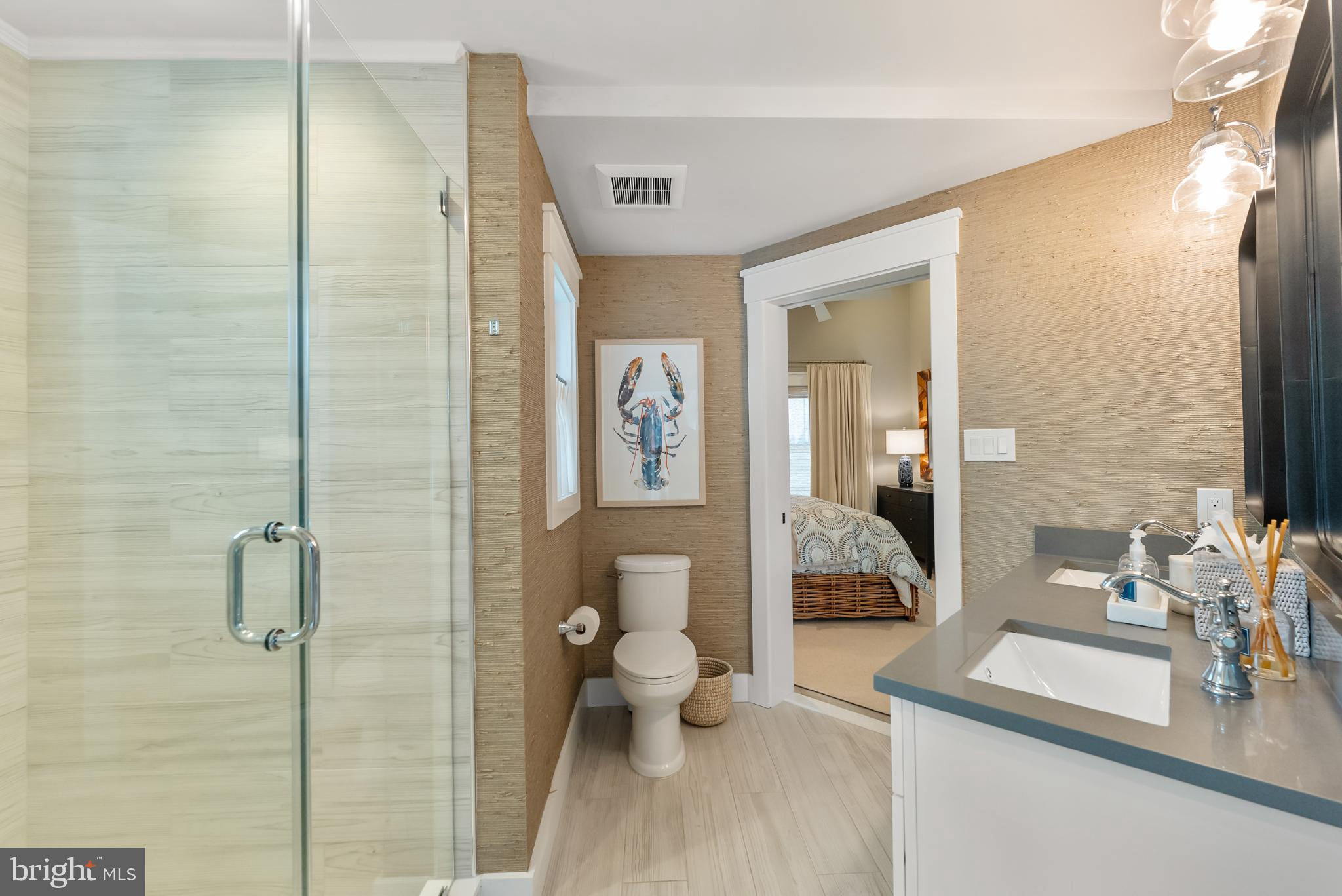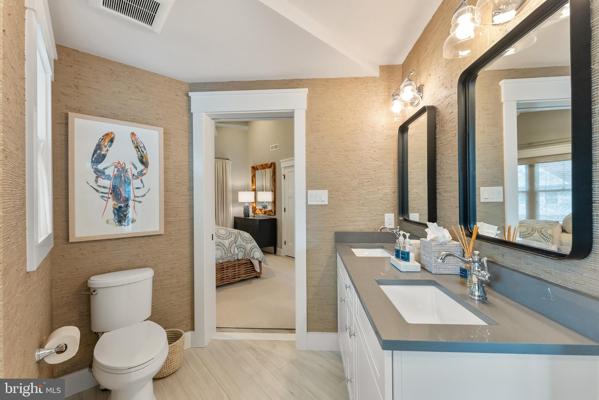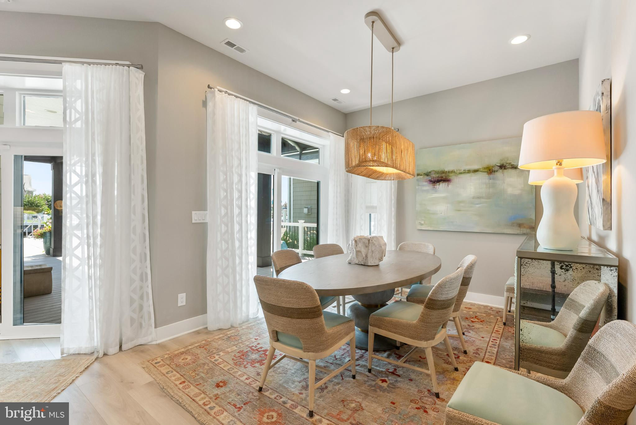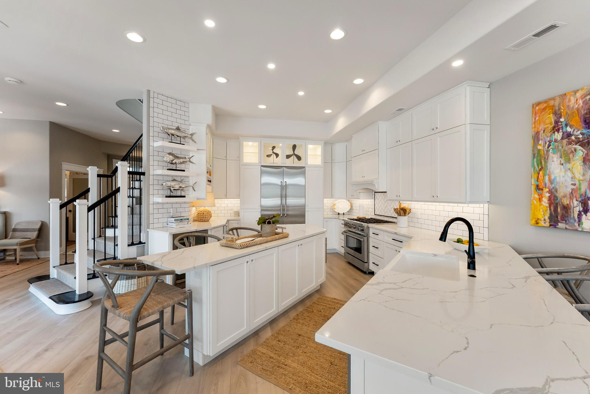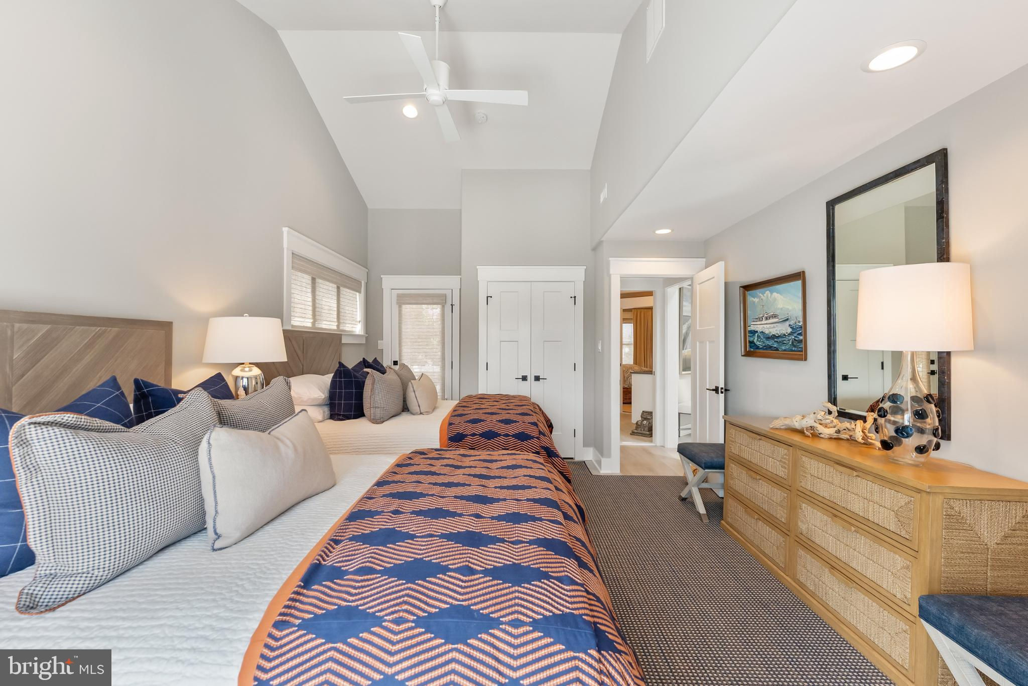 Riviera waterfront • Heated saltwater pool • Three boat slips • Reimagined 2020 • Quartz kitchen • 12’ ceilings • Outdoor kitchen + firepit • Furnished designer interior Life in Ocean City’s prestigious Riviera section offers a rare blend of serenity and sophistication. Just a few hundred yards from the Intracoastal Waterway, this lagoon-front residence spans roughly 3,400 square feet of refined coastal design. Reimagined in 2020, the home blends fresh coastal materials with enduring craftsmanship. Twelve-foot ceilings and open sightlines define the main level, creating an atmosphere of volume and light. Every detail—from architectural millwork to designer lighting—reflects thoughtful design and timeless quality. The kitchen showcases quartz countertops, a subway-tile backsplash, and a long central island designed for both cooking and gathering. Premium features include a Scotsman ice maker and built-in wine chiller, ideal for entertaining. Open to the living and dining areas, the kitchen captures shimmering lagoon views through walls of glass that blur the line between indoors and out. Practical touches include both an upstairs laundry room and a main-level laundry closet off the mudroom—perfect for rinsing beach towels or simplifying everyday living. Subtle coastal hues, custom window treatments, and designer furnishings bring a relaxed sense of polish throughout. Whether entertaining on the deck or enjoying quiet mornings by the lagoon, every space feels connected to the water. The primary suite overlooks the lagoon, with a sliding glass door that opens directly onto a deck positioned for sweeping water views. A vaulted ceiling enhances the sense of height and light, while a sitting area, oversized walk-in closet, and spa-style bath create a tranquil retreat that celebrates the home’s waterfront setting. Outdoors, the property becomes a private waterfront sanctuary. A heated saltwater pool anchors the setting beside a full outdoor kitchen and built-in gas firepit. The expansive deck invites alfresco dining, while three floating slips extend directly into the lagoon—ideal for boating, paddleboarding, or sunset cruises. Located within the sought-after Riviera section and just minutes from Ocean City’s beaches, marinas, and boardwalk, this property pairs comfort and convenience in equal measure. A two-car garage, updated systems, dual laundries, and curated 2020 finishes complete this exceptional offering. 2019 Glenwood Drive delivers waterfront elegance and turnkey ease on one of the island’s most desirable streets—a home where refined design meets effortless coastal living.