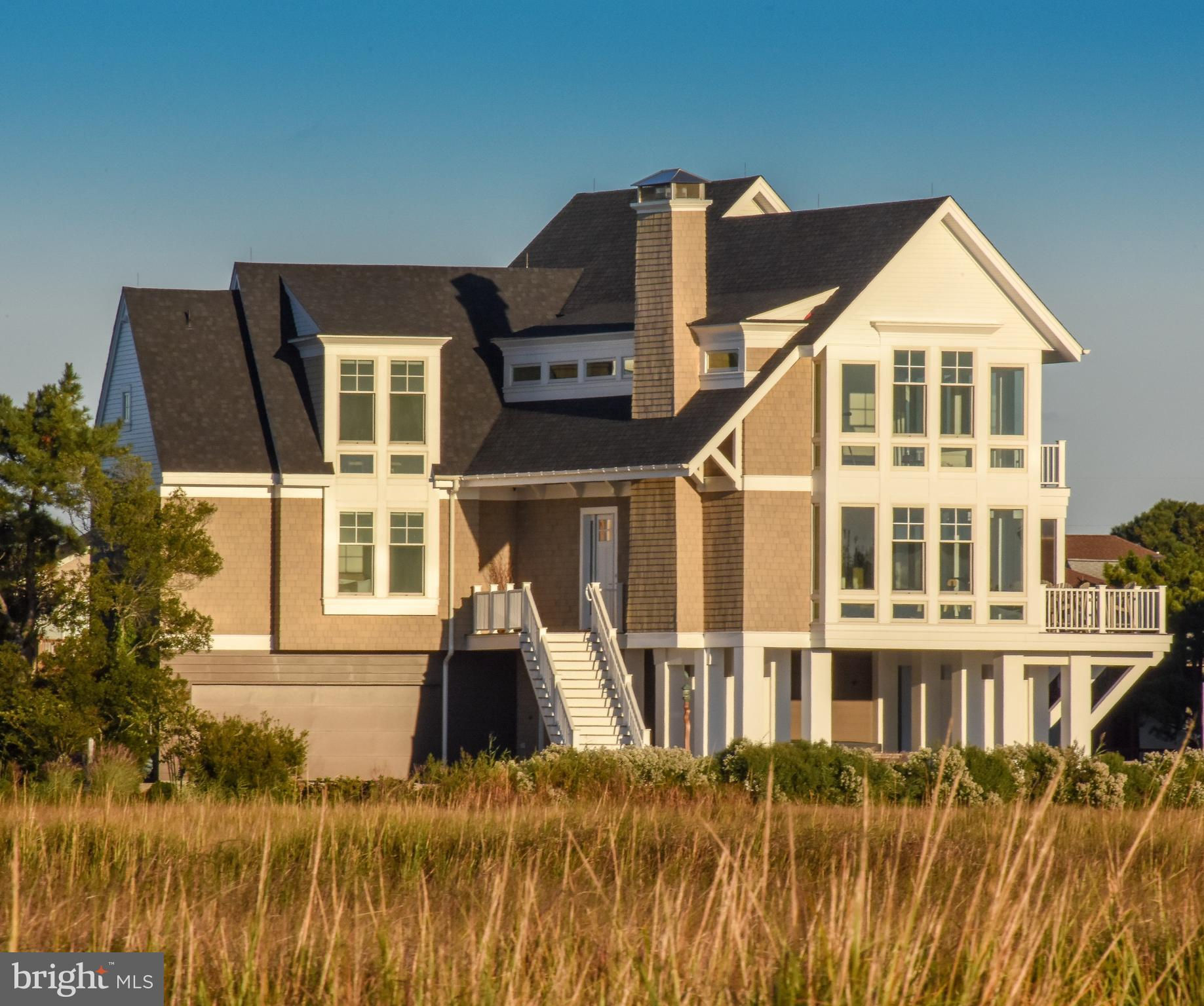 Take in unparalleled panoramic bay views from every room of this sophisticated modern beach home, ideally located on one of the most sought-after bayfront properties with water on three sides of the home. Complete with a private 50-foot dock, boat lift, and double jet ski lift, this exceptional residence was impressively designed, featuring high-end finishes and craftsmanship throughout. The expansive great room, with floor-to-ceiling windows on two sides, effortlessly frames sweeping views of the water and seamlessly blends the living, dining, and gourmet kitchen spaces. A large work island, bar with seating, and premium appliances elevate this culinary and entertaining space with easy access to a screened porch and open deck with views that are unable to be duplicated. The main level also offers a cozy family room, two guest bedrooms, and a full bathroom, along with a convenient powder room for guests. Upstairs, the bayfront primary suite is a tranquil retreat with its own private waterfront deck. Three generously-sized guest rooms each feature en-suite bathrooms, ensuring ample space and privacy for visitors. On the ground level, a spacious workshop and covered patio provide the perfect setting for crab feasts and relaxation, while the brick paver patio offers an ideal spot for evening bonfires by the water. The outdoor shower with a changing area makes clean-ups after a day on the beach or boat a breeze, and a two-car garage plus second one-car garage provide ample storage and convenience for all your vehicles, beach gear, kayaks, canoes, boating accessories, and bikes. Additional highlights include an elevator shaft for future conversion, geothermal hvac, and a location that’s impossible to duplicate—situated on a peninsula with sweeping views of the bay and wetlands, yet just moments from the beach. Homes of this caliber, in such a prime location, are a rare offering.