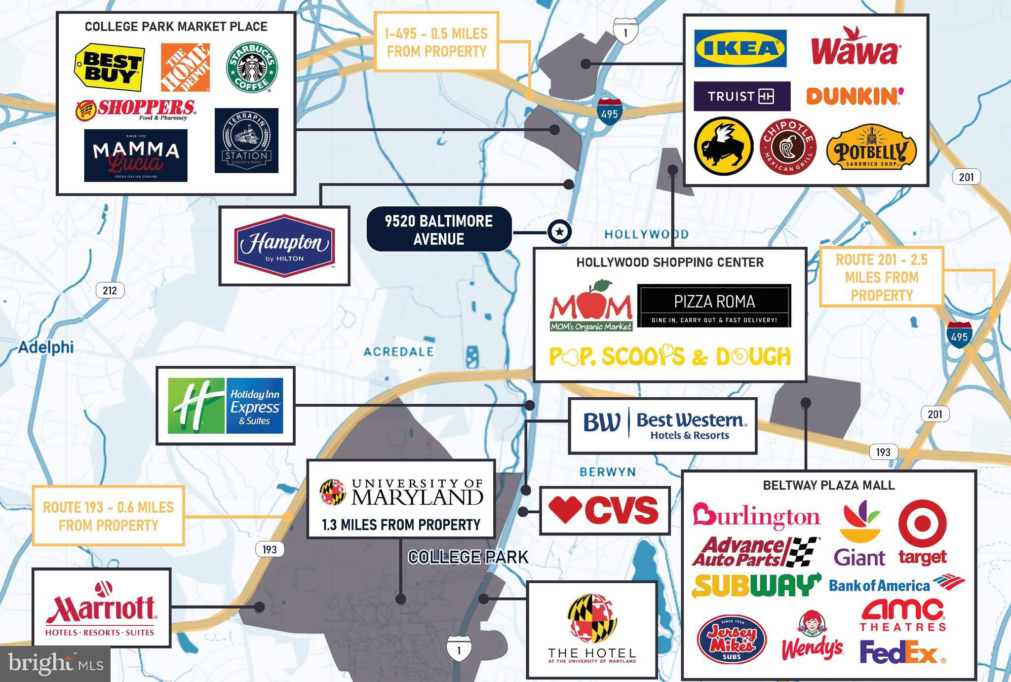 +38,000 SF commercial building with retail showroom, warehouse, administrative space, dedicated parking, and recently replaced roof (2022). Delivered 100% vacant or with existing tenant in place. Located on Rt. 1 / Baltimore Avenue (42,800 AADT) in College Park, MD and strategically positioned between I-495 (DC Beltway) and Rt. 193 with access to the University of MD student population, DC, and MD customers. Second floor office is currently leased to a church on a month-to-month basis but can be delivered 100% vacant. Flexible NAC (Neighborhood Activity Center) zoning allows for a wide range of retail/office/commercial. Improvements are in good condition and present an excellent foundation for an investor to add value through leasing or an owner/user to capture this strategic location in College Park, MD.